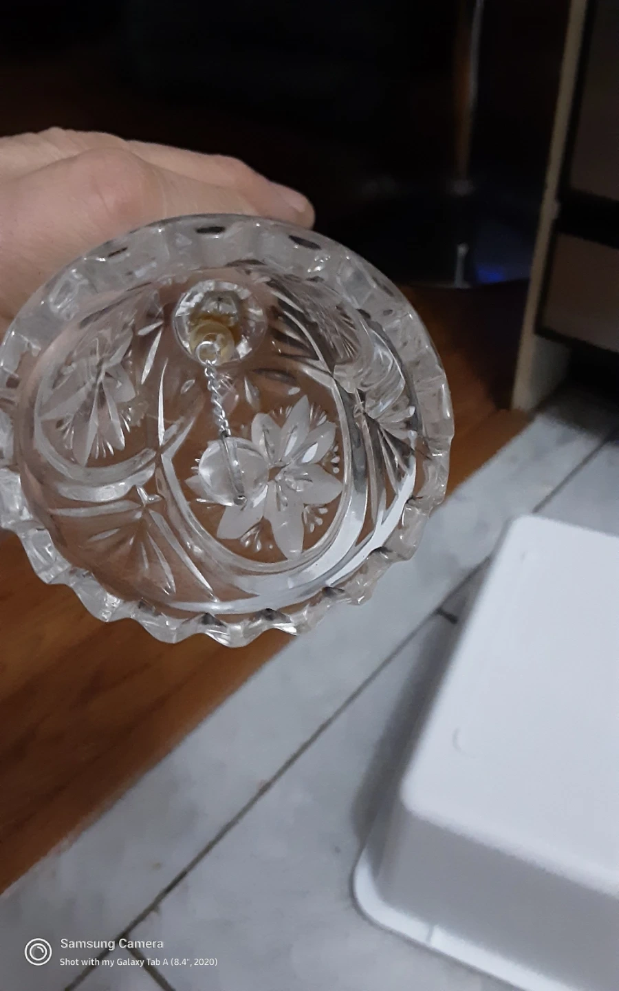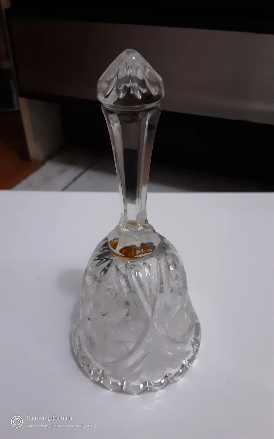Selling a beautiful crystal glass bell. It features intricate floral designs and a clear, elegant finish. Perfect as a decorative piece!