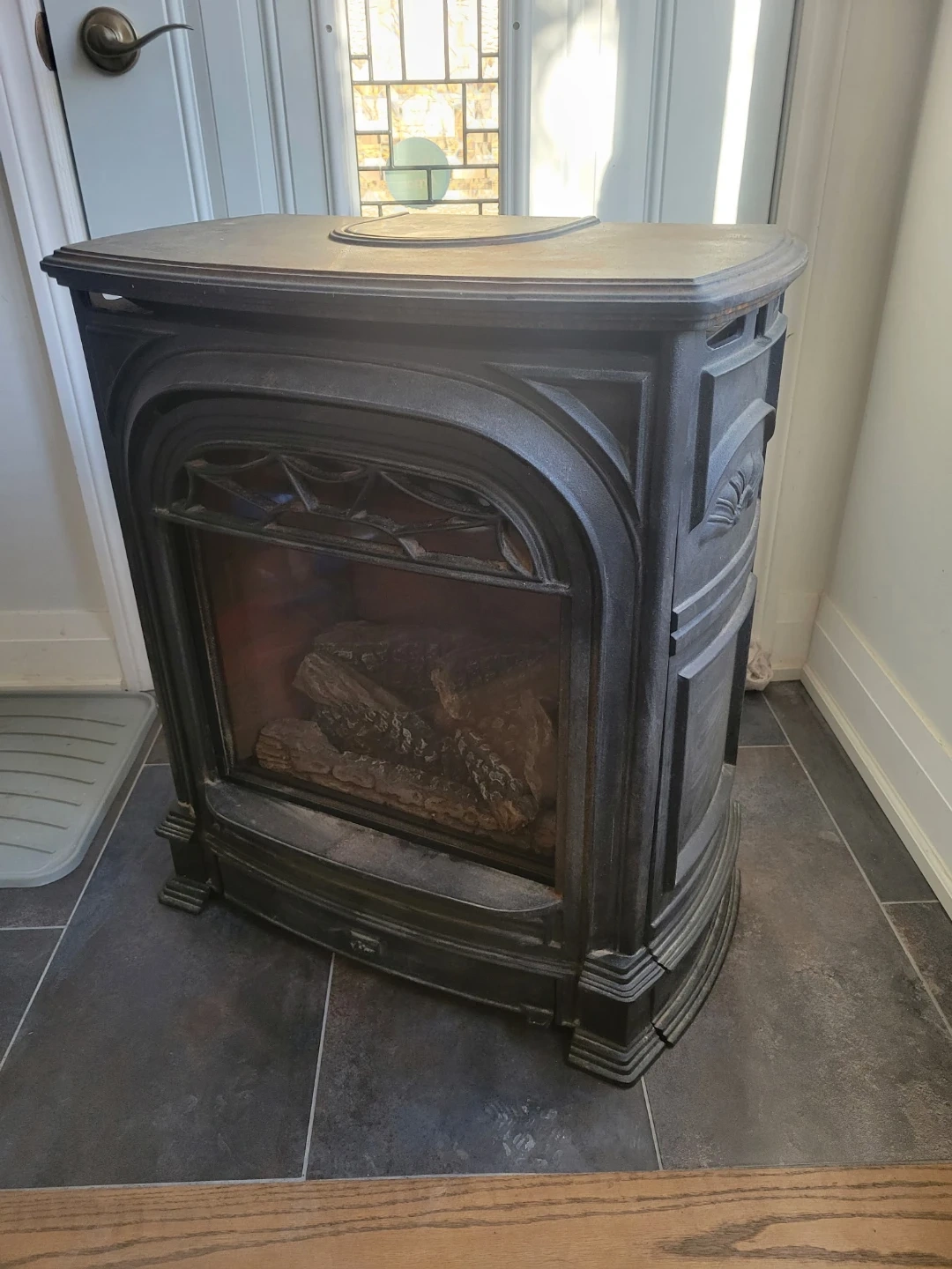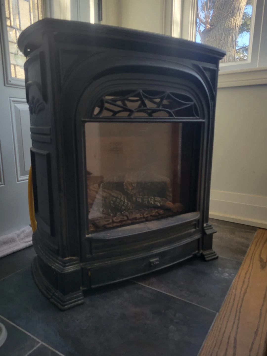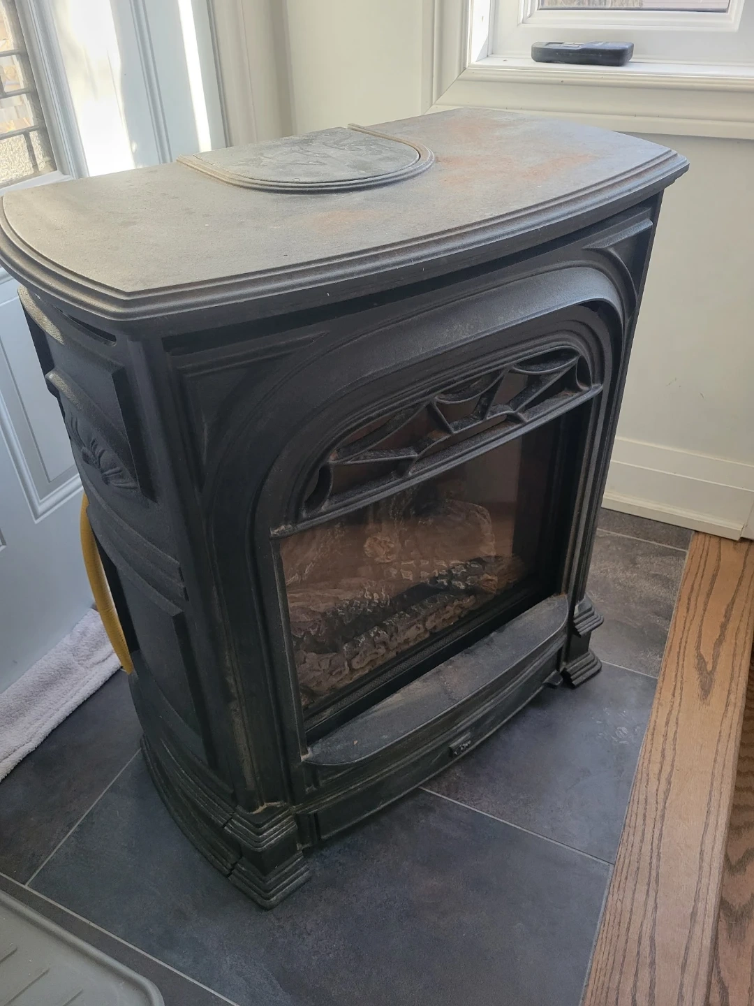 Freestanding stove version of the Valor Portrait fireplace, with remote. This is a gas fireplace.