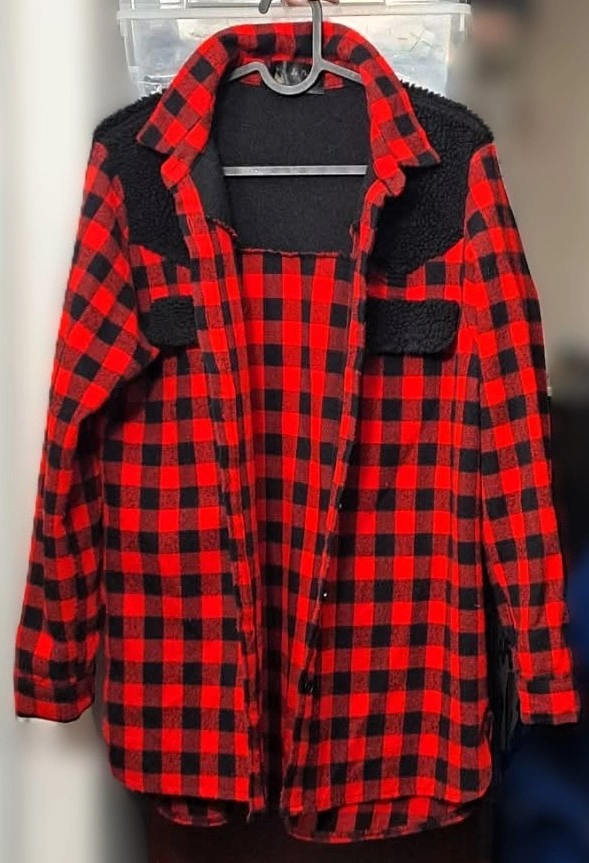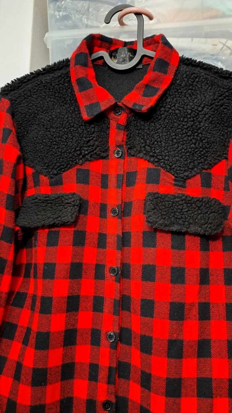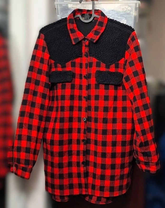 Experience superior warmth and trendsetting style with this durable yet incredibly soft Sherpa-lined shirt jacket, ethically crafted in South Korea. This versatile "shacket" perfectly blends a rugged, classic American outdoor aesthetic with the high-quality craftsmanship renowned in Korean apparel manufacturing. It is warmer than a standard shirt but lighter than a bulky coat, making it your ideal layering piece for fall, winter, and spring. Regular, relaxed fit roomy enough for comfortable layering over a t-shirt or sweatshirt. Stylish black Sherpa panels on the shoulders and pocket flaps add a unique, textural contrast that sets this piece apart from typical flannel jackets. New No Tag. For pick-up and serious inquiries only.