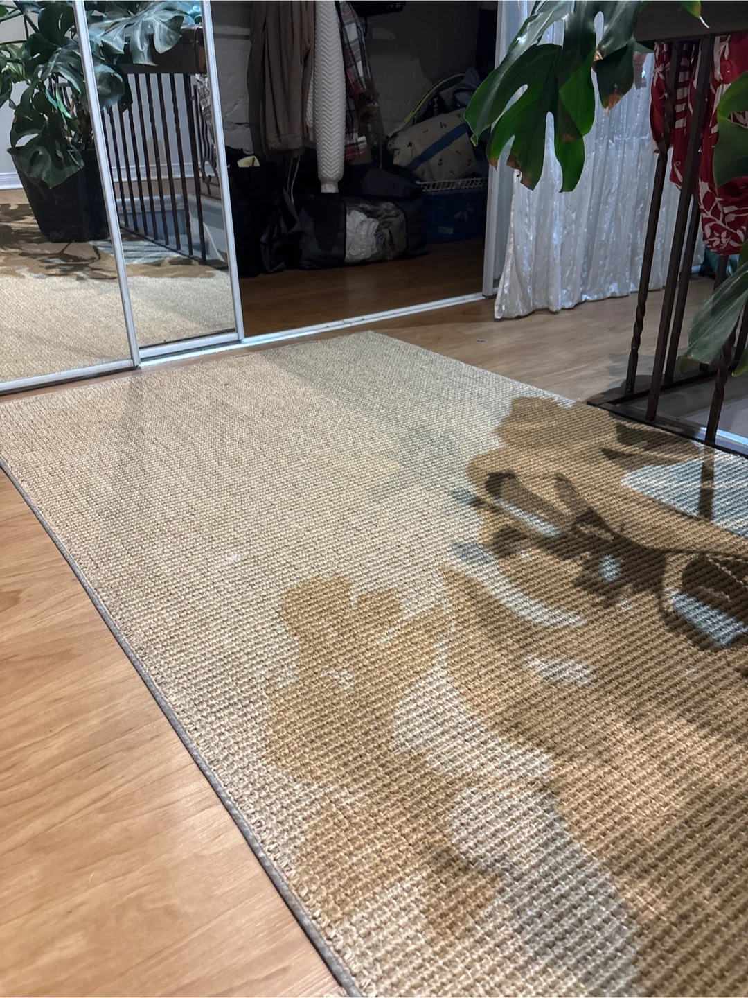 Selling a woven rug in a neutral colour. It's in great shape and would look lovely in any room. Perfect for adding a touch of texture and warmth to your space!