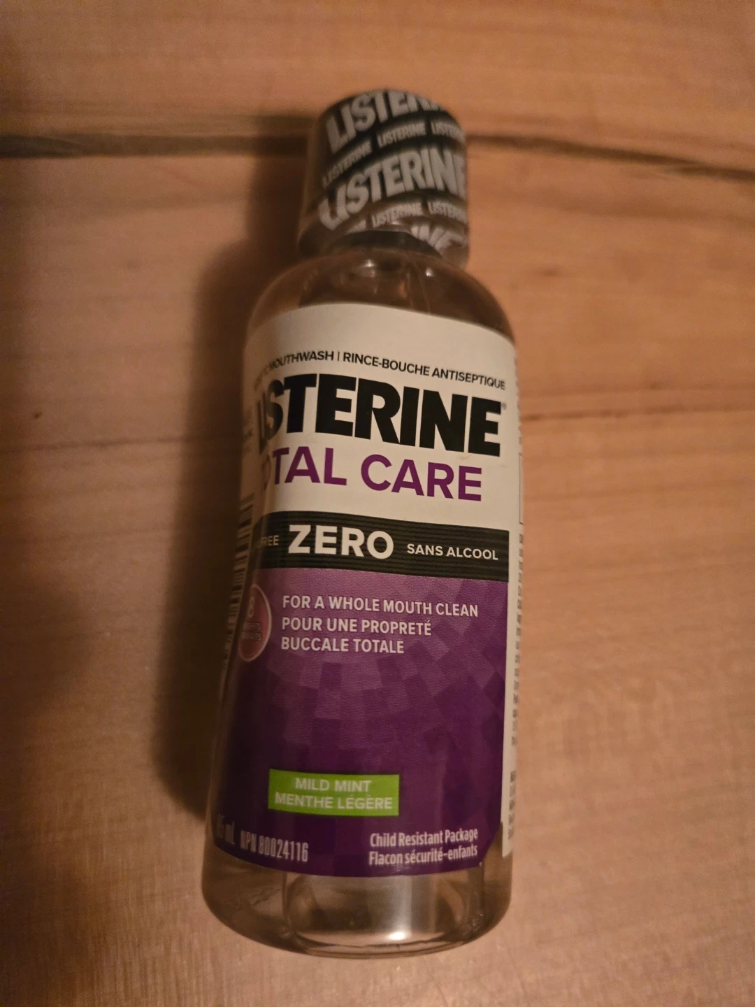 Listerine Total Care Zero mouthwash for a whole mouth clean. It's alcohol-free and has a mild mint flavour. Child resistant package