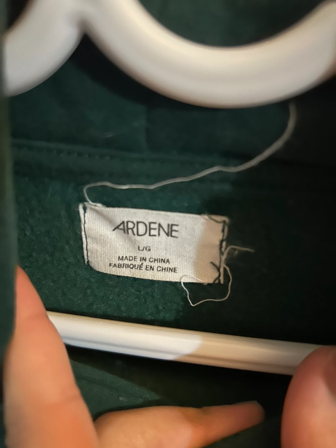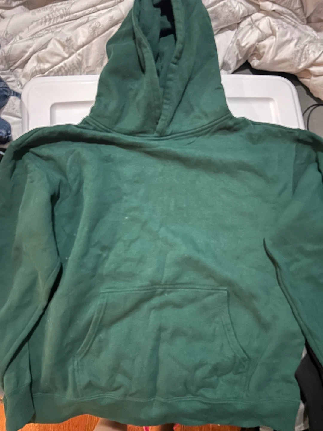 Selling a comfy Ardene hoodie in a nice green colour! It's a size L/G and has a classic hoodie design with a front pocket. Perfect for staying cozy on cooler days