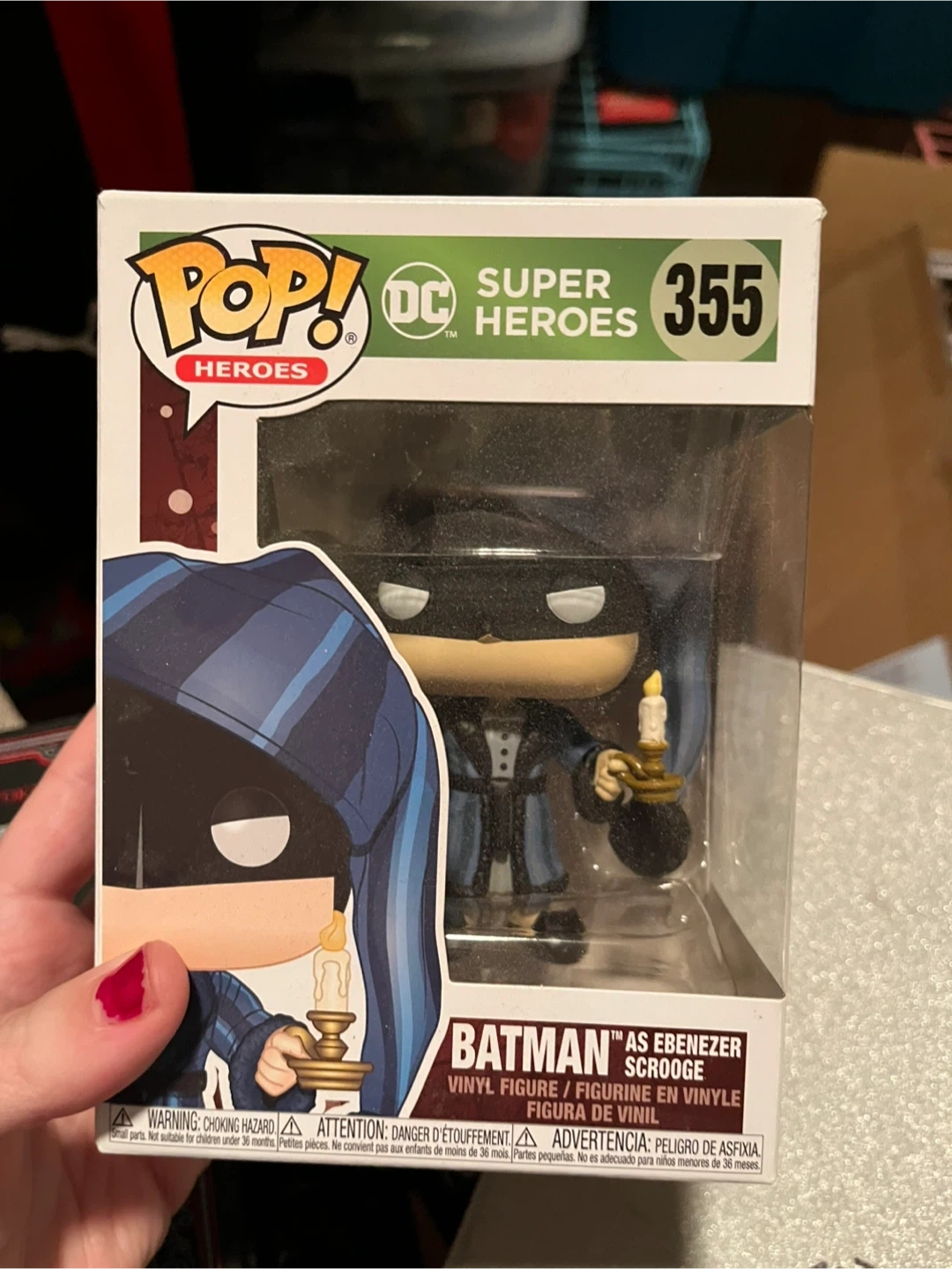 Buy & SellFunko Pop! DC Heroes Batman as Ebenezer Scrooge #355Funko Pop! DC Heroes Batman as Ebenezer Scrooge #355$25Selling a Funko Pop! from the DC Heroes line. This one is Batman as Ebenezer Scrooge, and it's number 355 in the series. The box is included!ConditionNewWHERE TO MEETCheck LocationView MapSELLERverifiedSamanthaLakeshore17913 reviews0 chats·0 favorites·7 viewsSEND CHAT TO SELLERHi Samantha! I’m interested in your listing.Hi Samantha! I’m interested in your listing.Get the Karrot app to chatSign In to chat