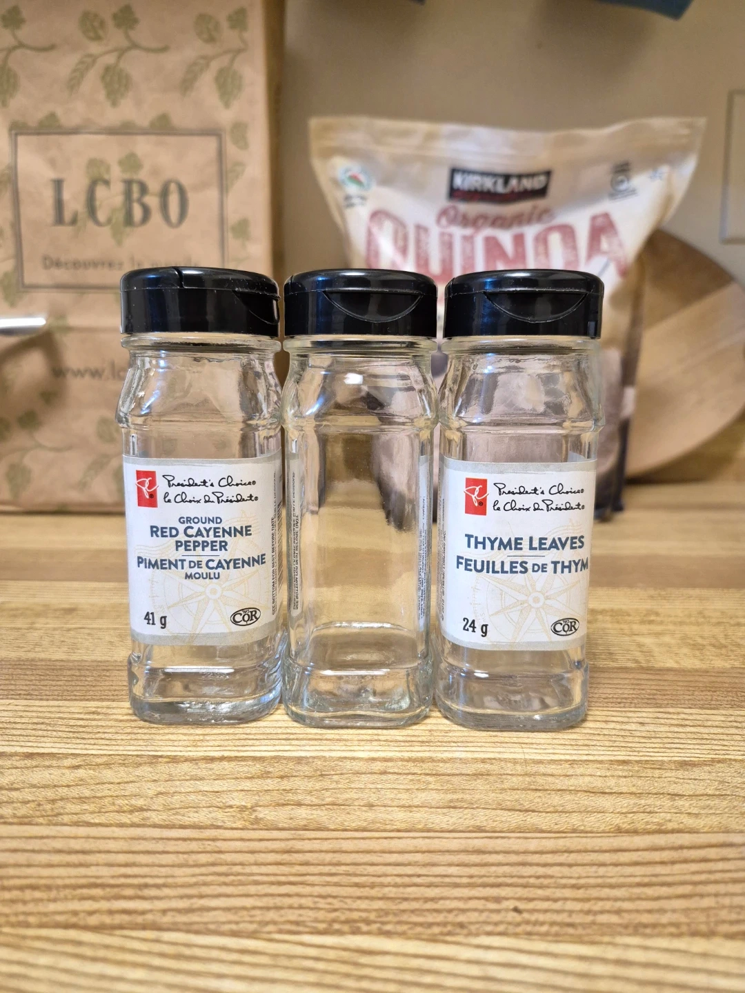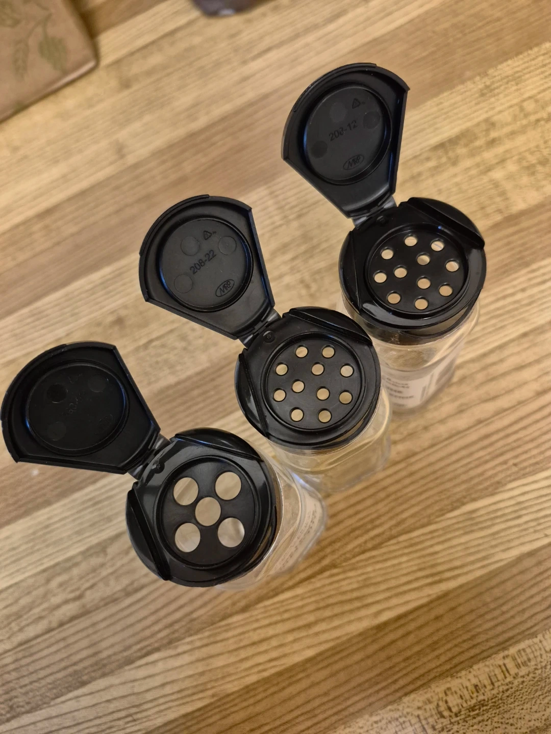 Trio of perfect PC glass spice jars. Super clean and as-new.