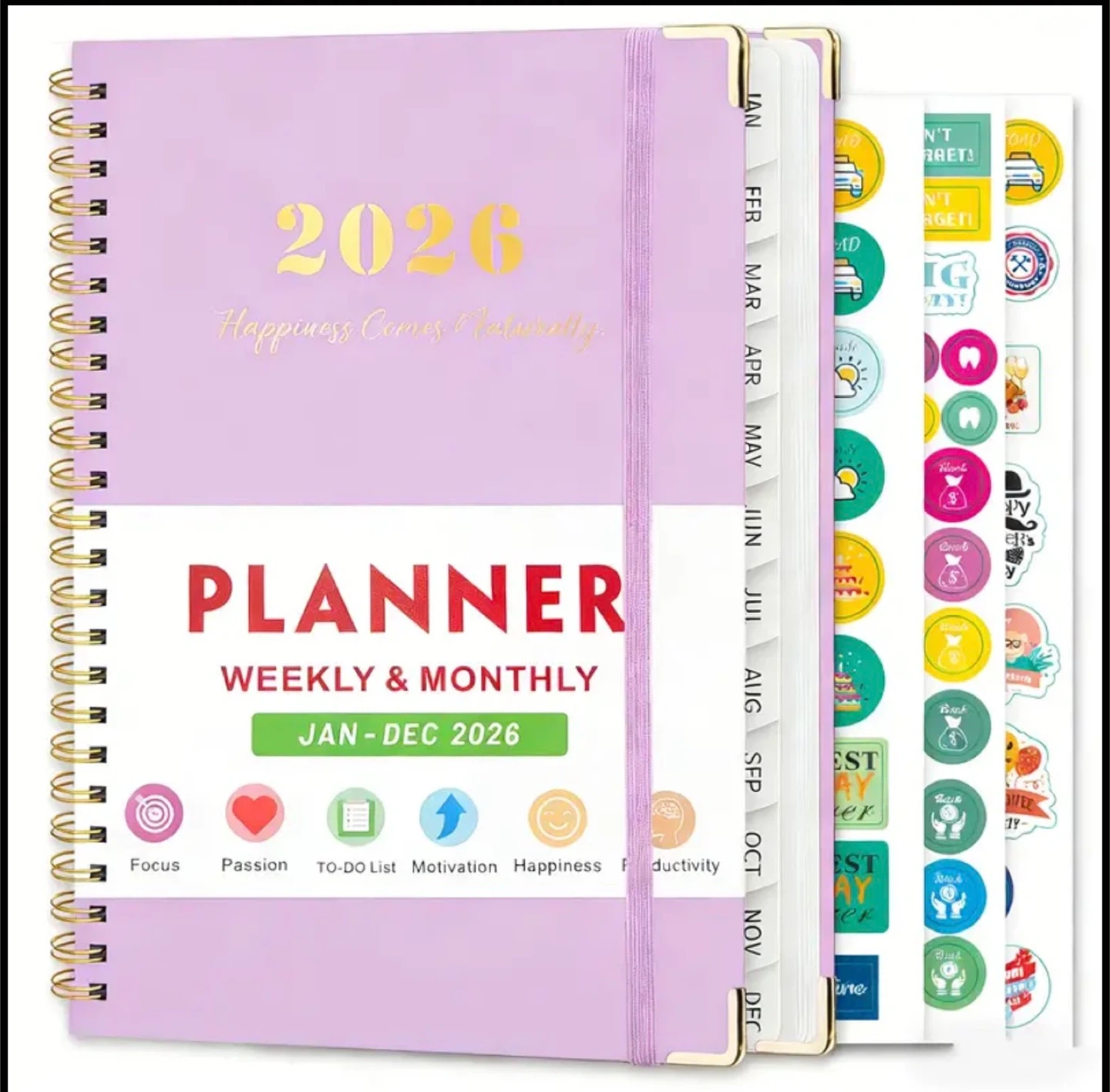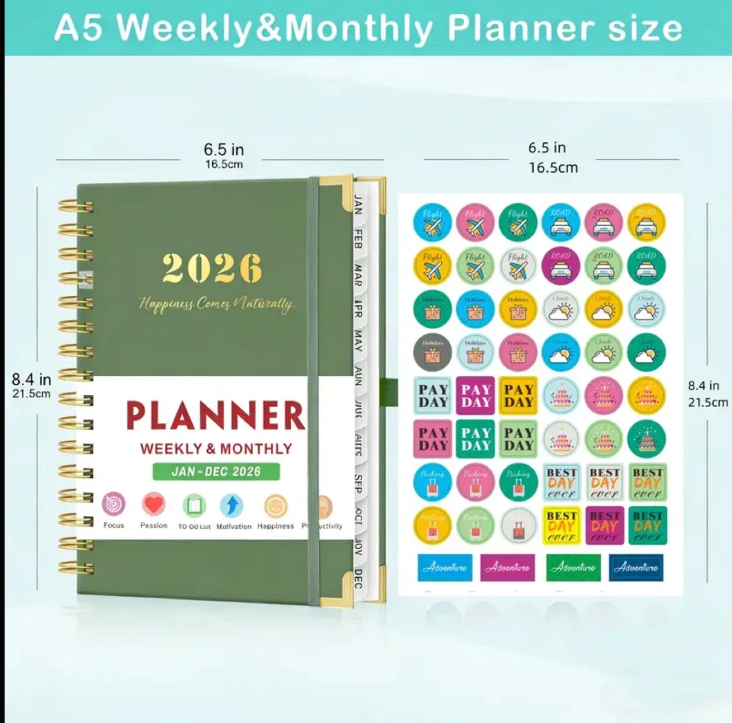 2026 Planner, Weekly & Monthly Layout From January to December 2026, with Ruler, 8.4"x5.7", 3 Planner Stickers, Daily Journal Organizer with Inner Pocket, for Office School, Valentine's Day