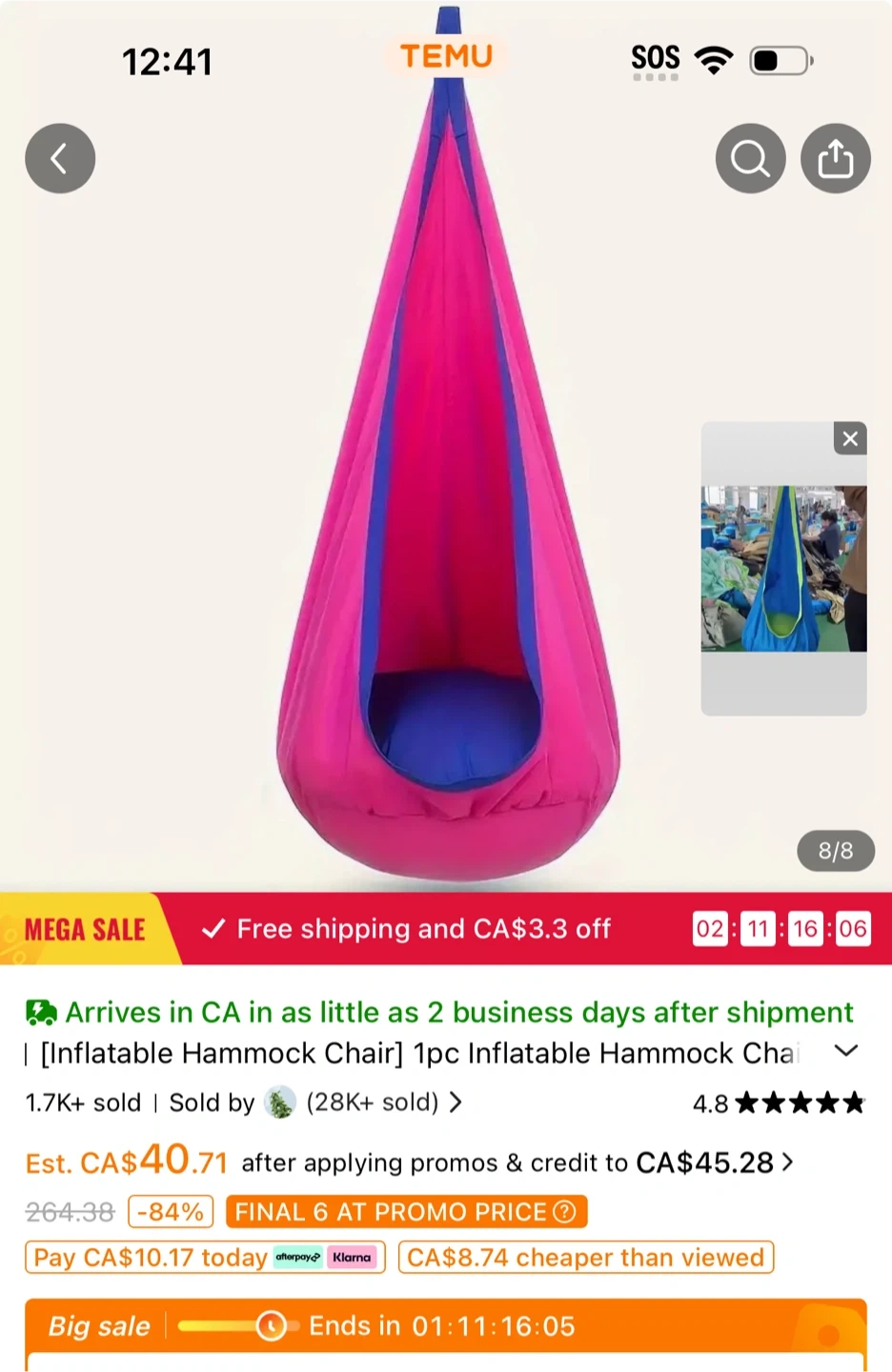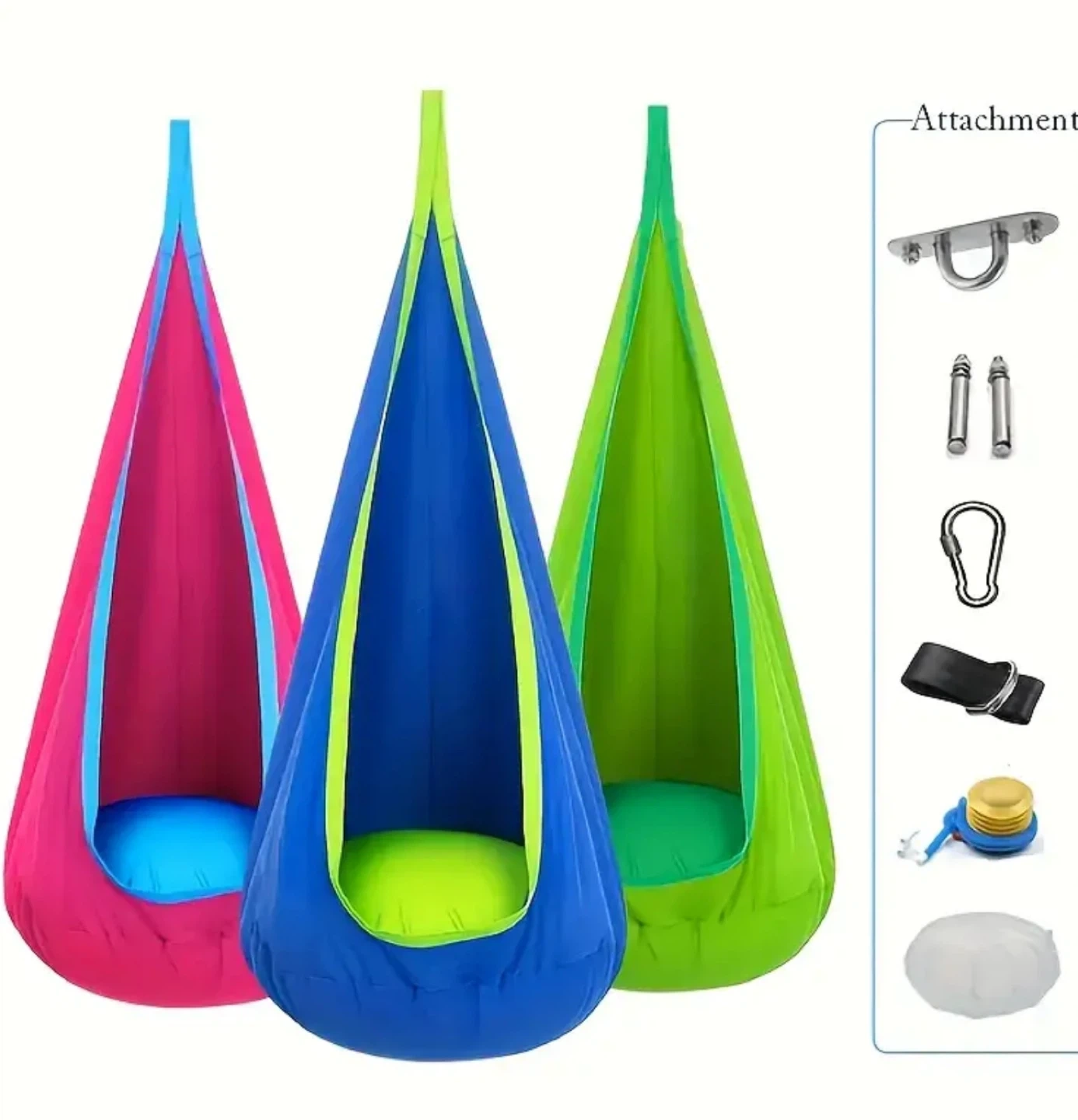 Add a fun and relaxing touch to any room with this hanging hammock chair! It's perfect for kids and adults alike. Easy to install and enjoy!