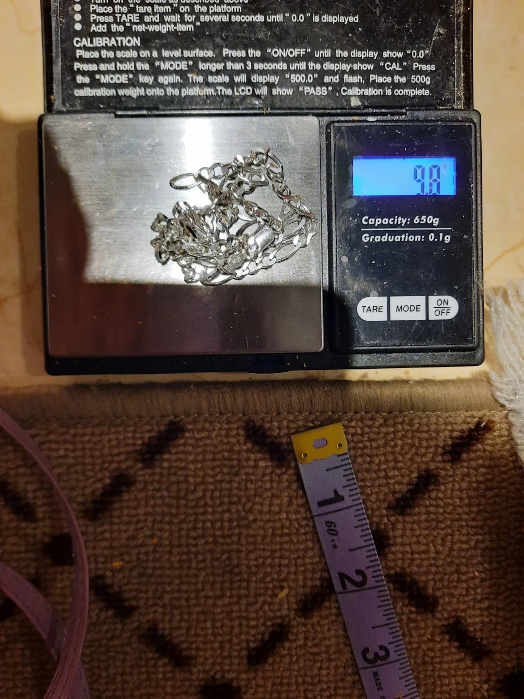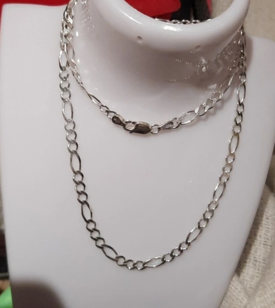 Sterling silver figaro chain necklace, made in Italy. It weighs 9.8 grams. The chain is approximately 20 inches long. A beautiful piece of jewelry!