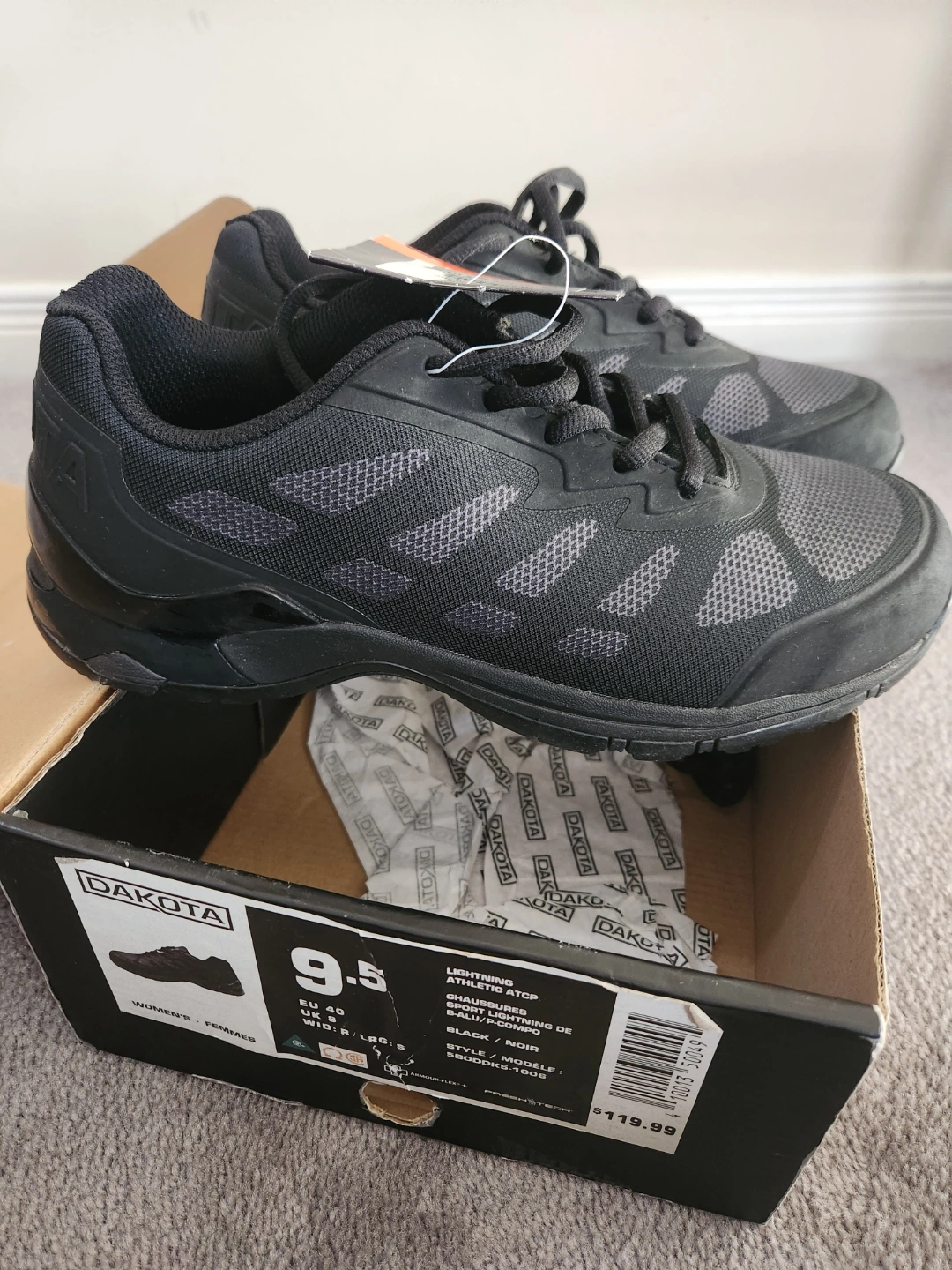 Black Dakota, work steel toe shoes. Size 9.5 women's. New in box. Durable sole. Comfortable design.