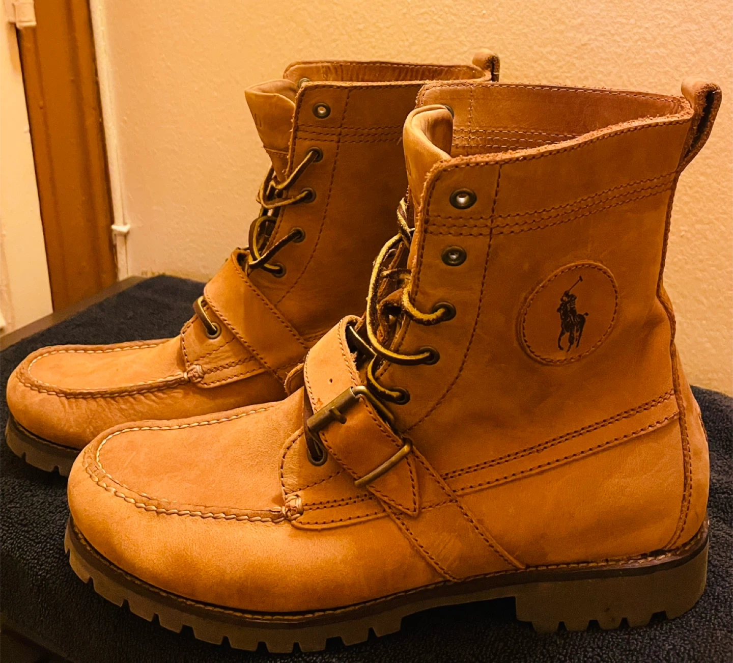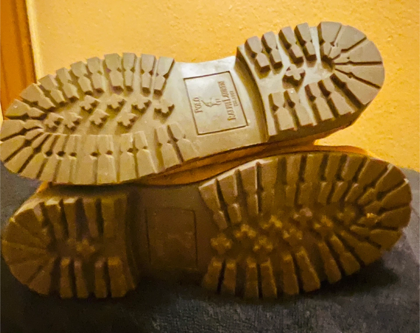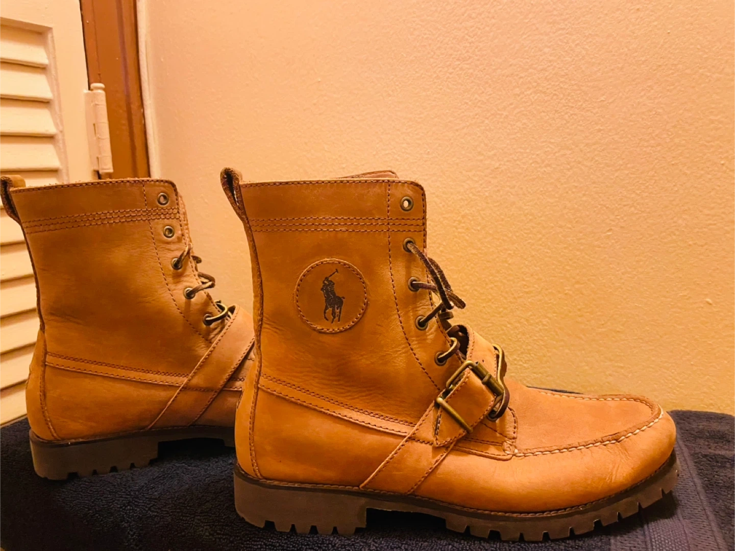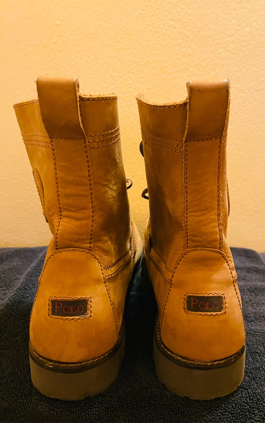 These stylish Polo Ralph Lauren boots are crafted from quality leather. They feature a lace-up front and buckle strap detail for a secure fit. Perfect for a rugged yet fashionable look!