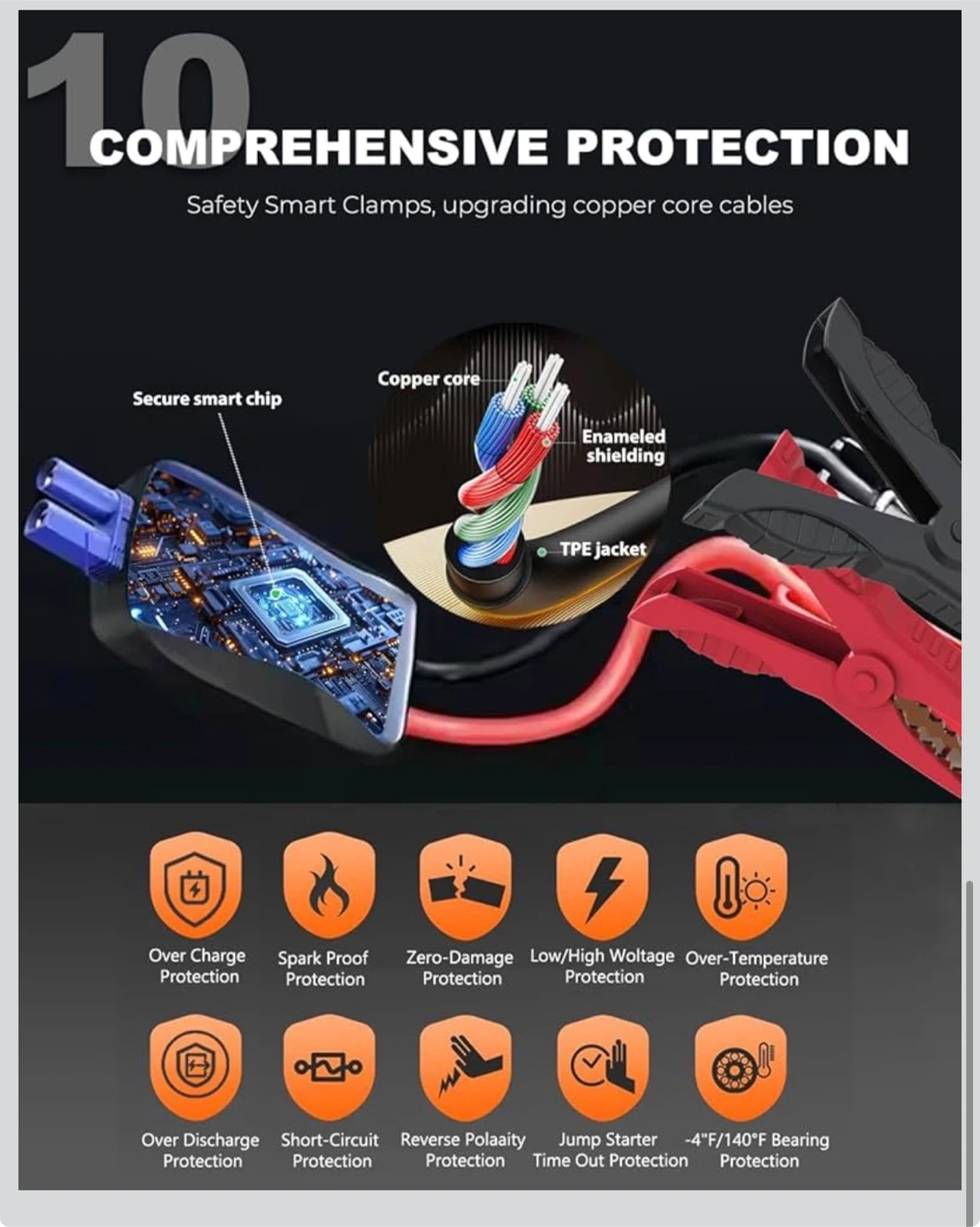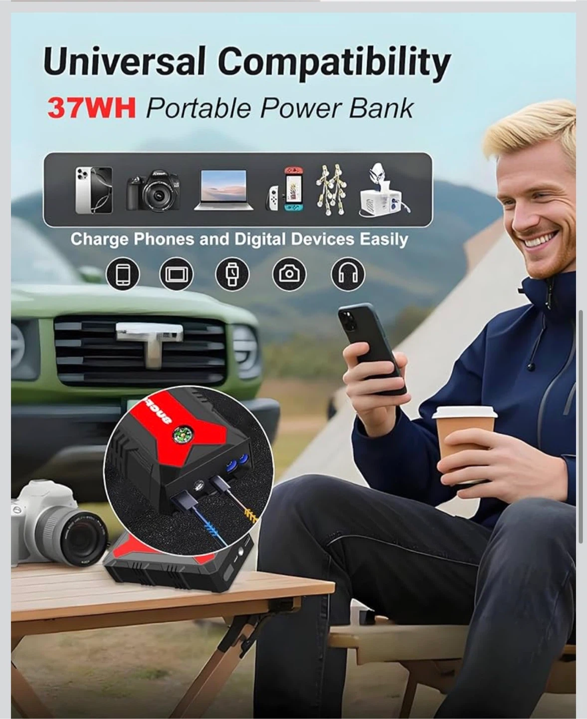 Car Battery Jump Starter, 4000A Battery Jumper Starter Portable (for 9.0L Gas or 7.0L Diesel Engine), Jump Box, Jump Starter Battery Pack with Jumper Cable, LED Light, USB QC3.0 (Red)