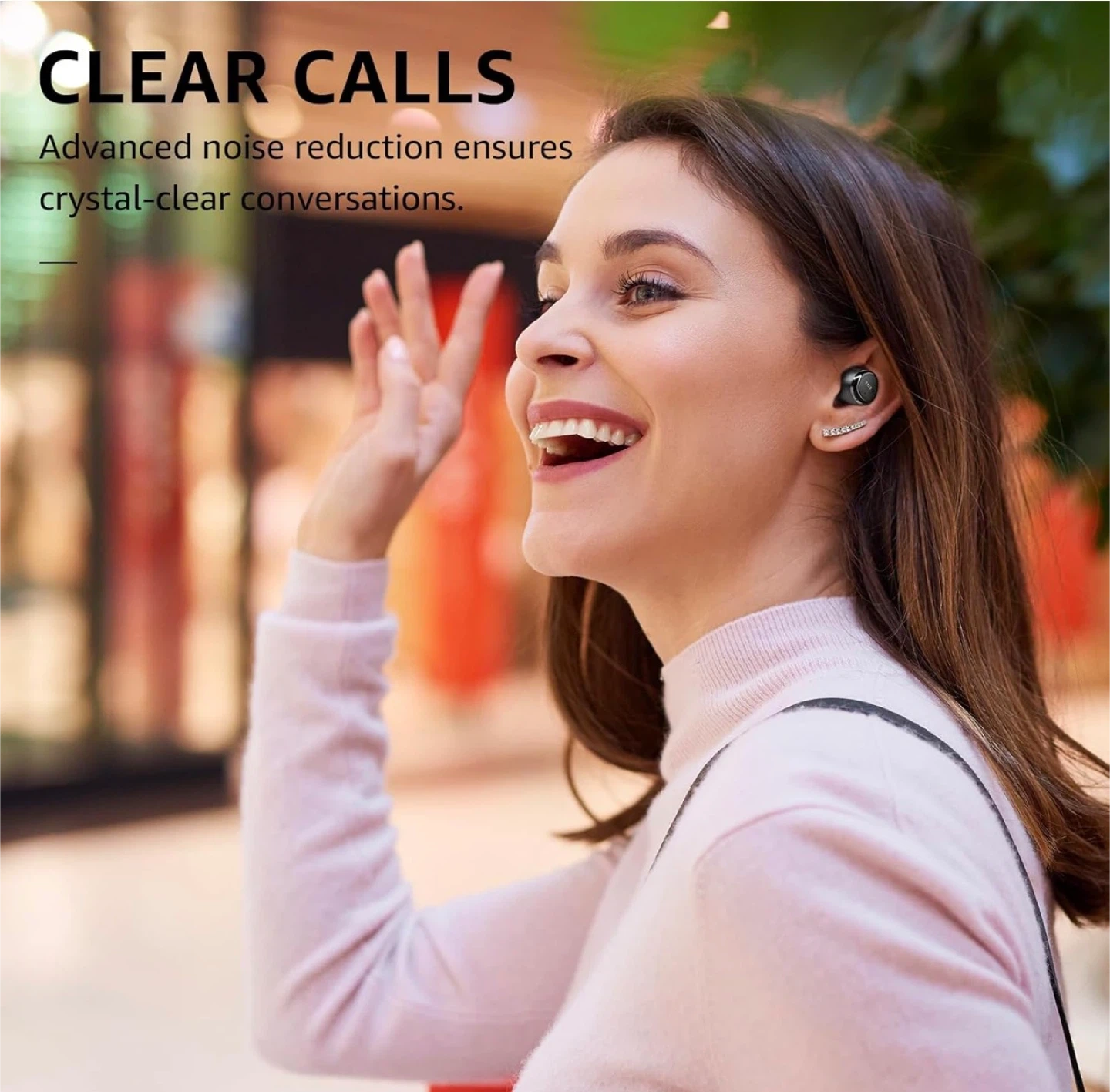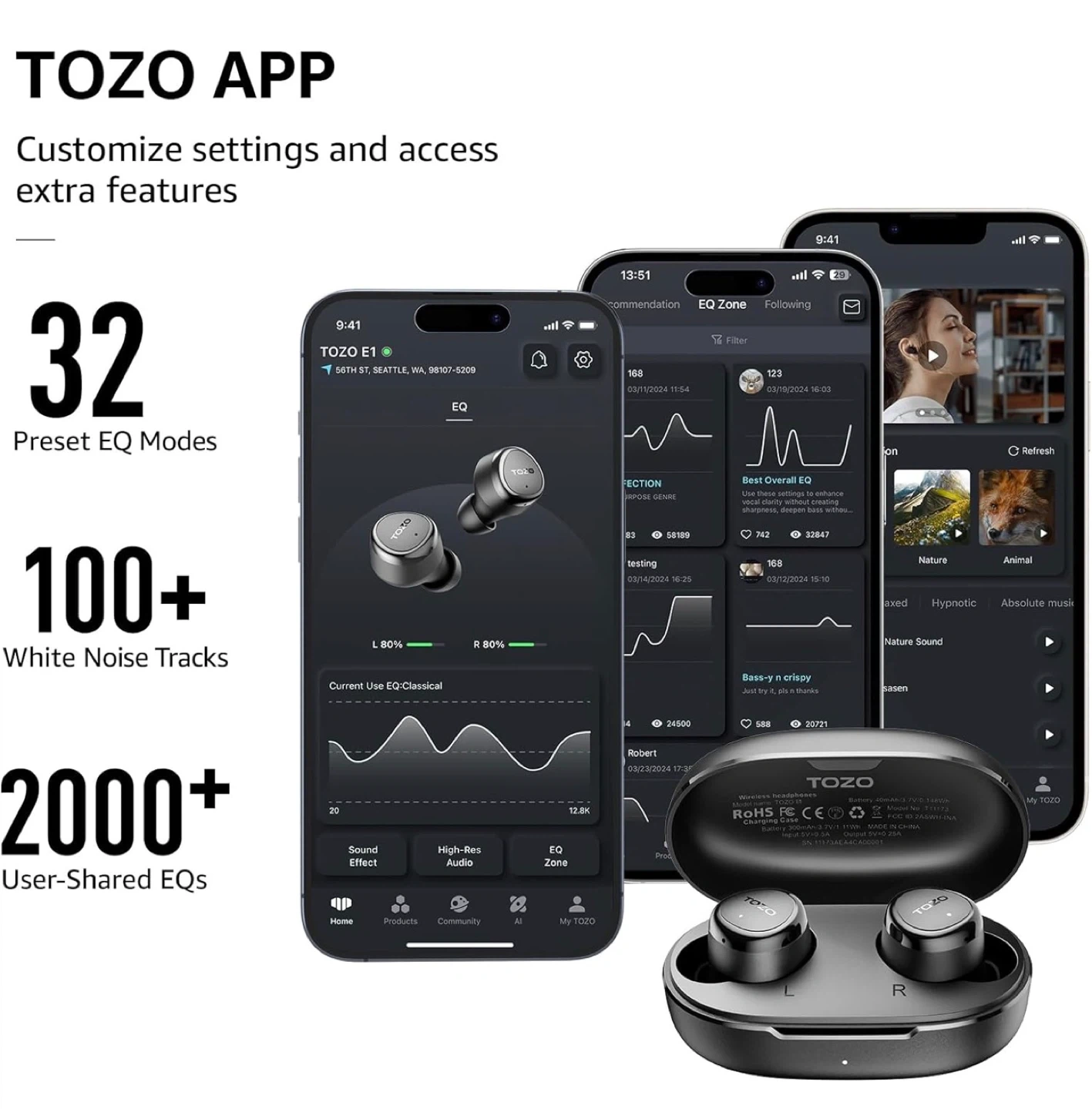 E1 Wireless Earbuds Build in Mic Clear Calls Ergonomic Light Weight Bluetooth 5.3 in Ear Headphones Waterproof Premium Stereo Sound Ear Buds 30H Playtime with 32 EQs via APP