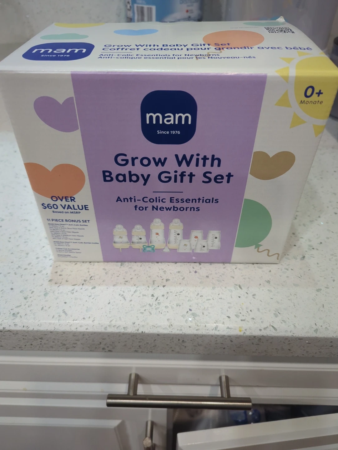 This set includes 11 anti-colic essentials for newborns. It comes with MAM Easy Start Anti-Colic Bottles in 160ml/5 oz and 260ml/9 oz sizes. Also included are various slow and fast flow nipples, trainer cup accessories, and a MAM pacifier. Perfect for starting out with your new baby!