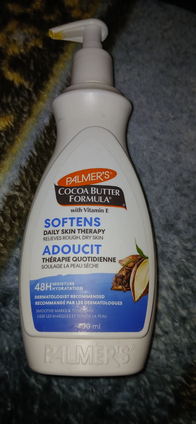 Palmer's Cocoa Butter Formula Daily Skin Therapy lotion softens rough, dry skin. It's dermatologist recommended for 48-hour moisture. This formula smooths marks and tones skin.