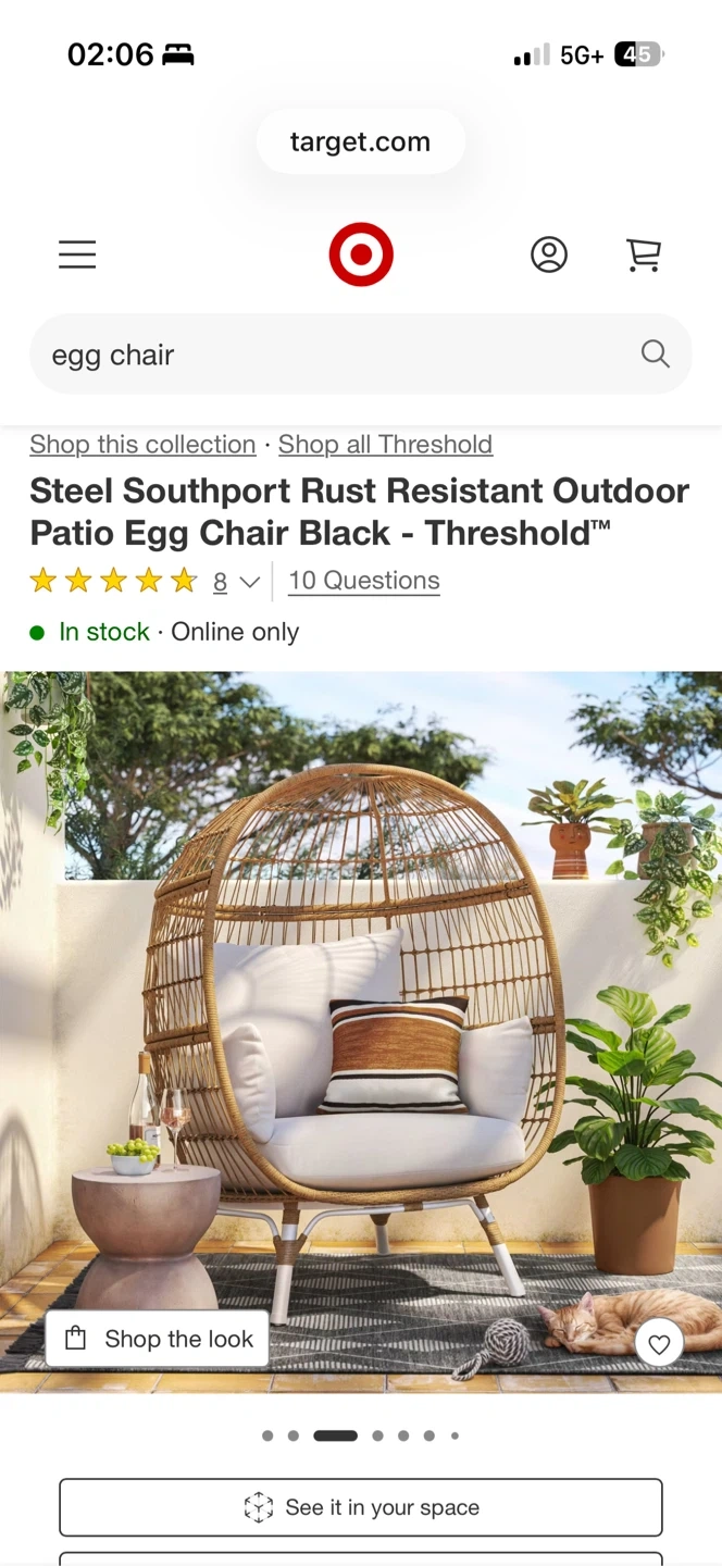 This outdoor egg chair features a rust-resistant steel frame and a woven design. It includes comfortable cushions for enhanced seating. It's perfect for adding a cozy seating area to your patio or garden! 2 chairs , green cushion