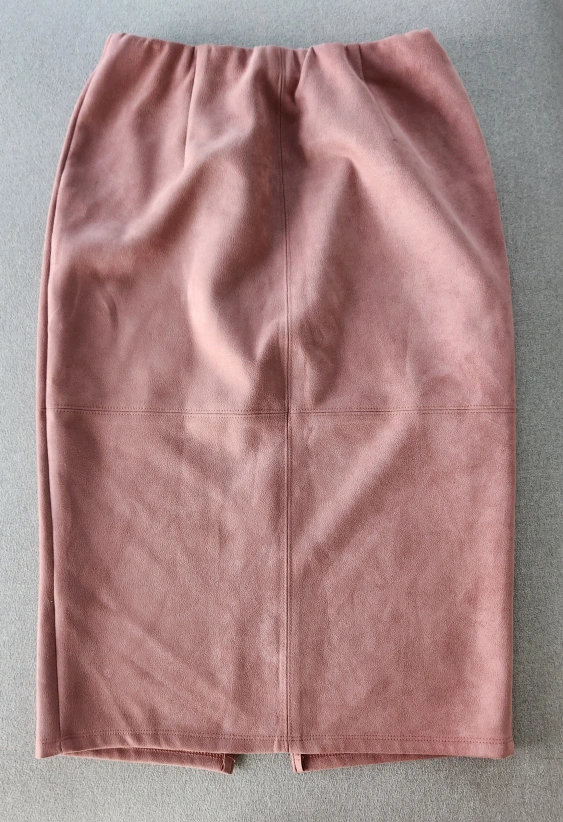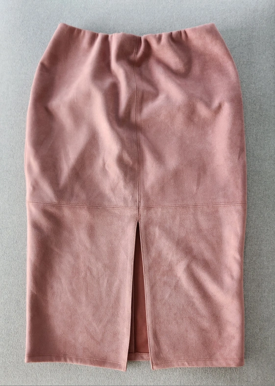 Gently used suede pink skirt. Size small but the band is stretchy and can probably fit a tight medium too