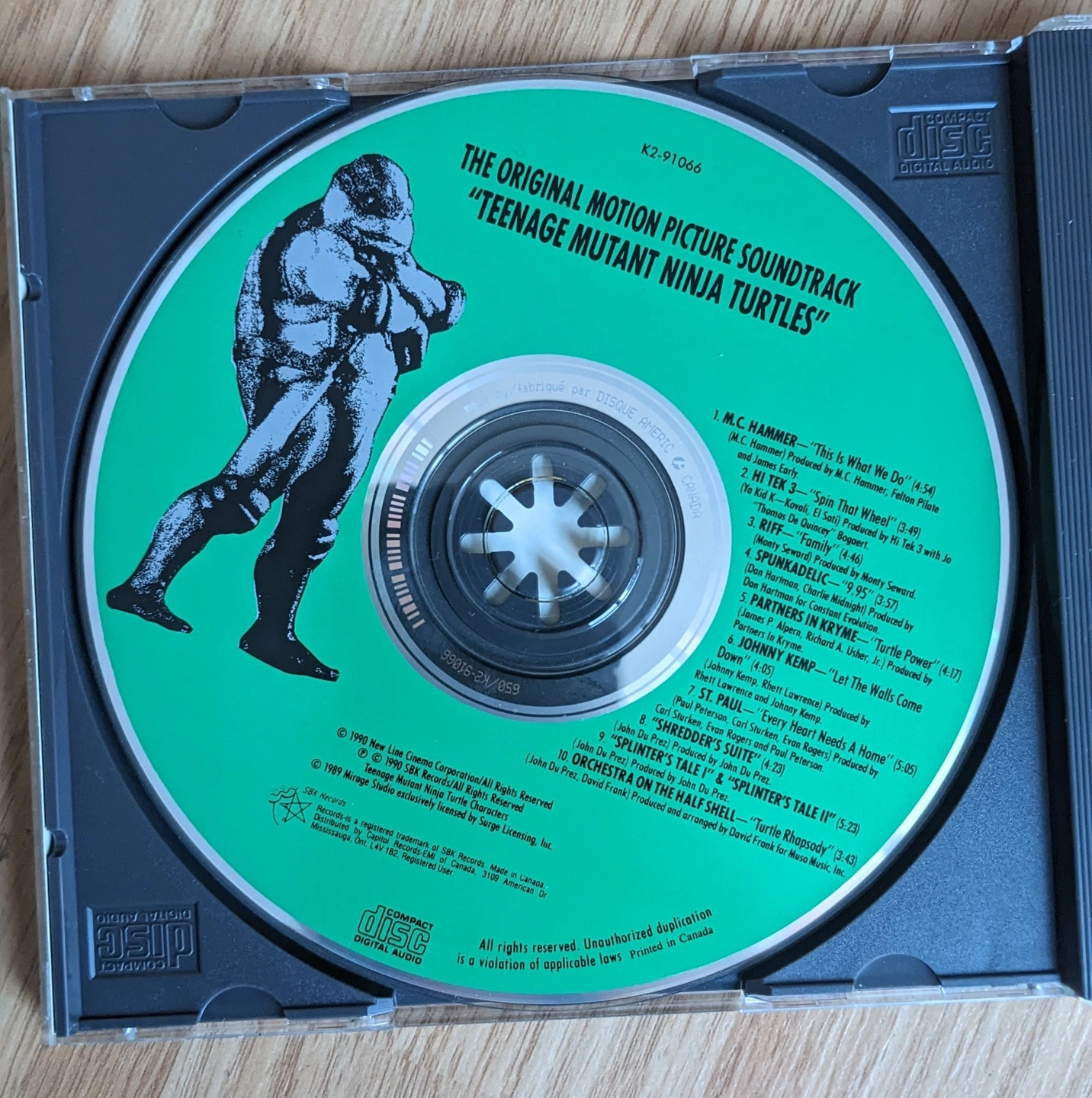 Selling the original motion picture soundtrack for Teenage Mutant Ninja Turtles on CD! This is a great nostalgic piece for any TMNT fan. The CD includes hits like "This Is What We Do" by MC Hammer and "Spin That Wheel" by Hi Tek 3. A must-have for your collection!