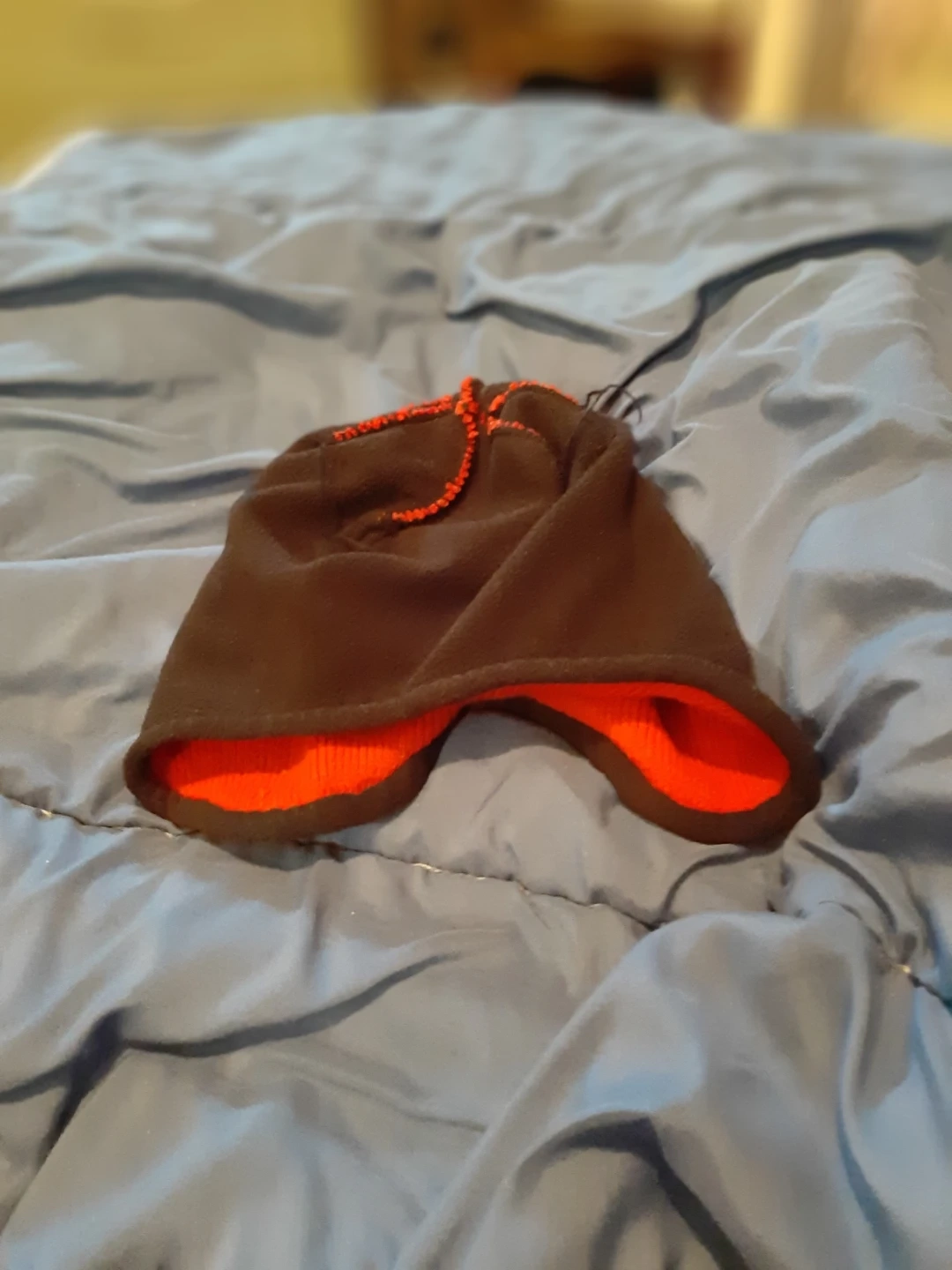 This red warm hat is clean, dry. It covers the ears. Could fit male or female adult or teen.