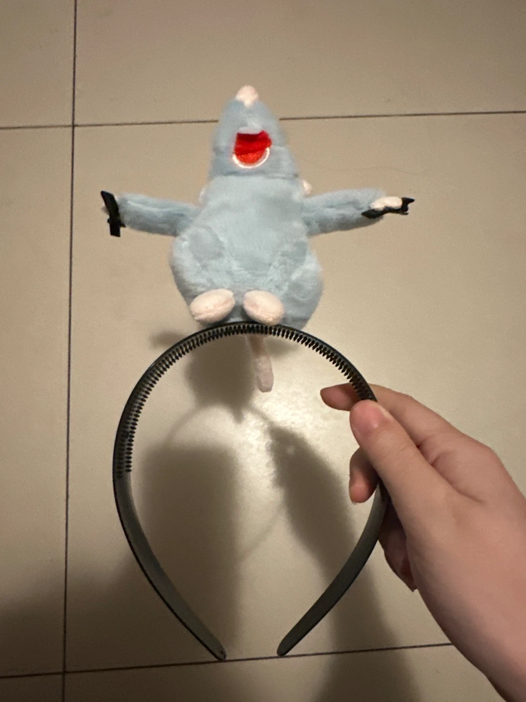 This is a soft, light blue plush headband featuring Remy from Ratatouille dressed as a chef. It's designed as a fun hair accessory for parties or everyday wear! The headband is black and one size fits most.