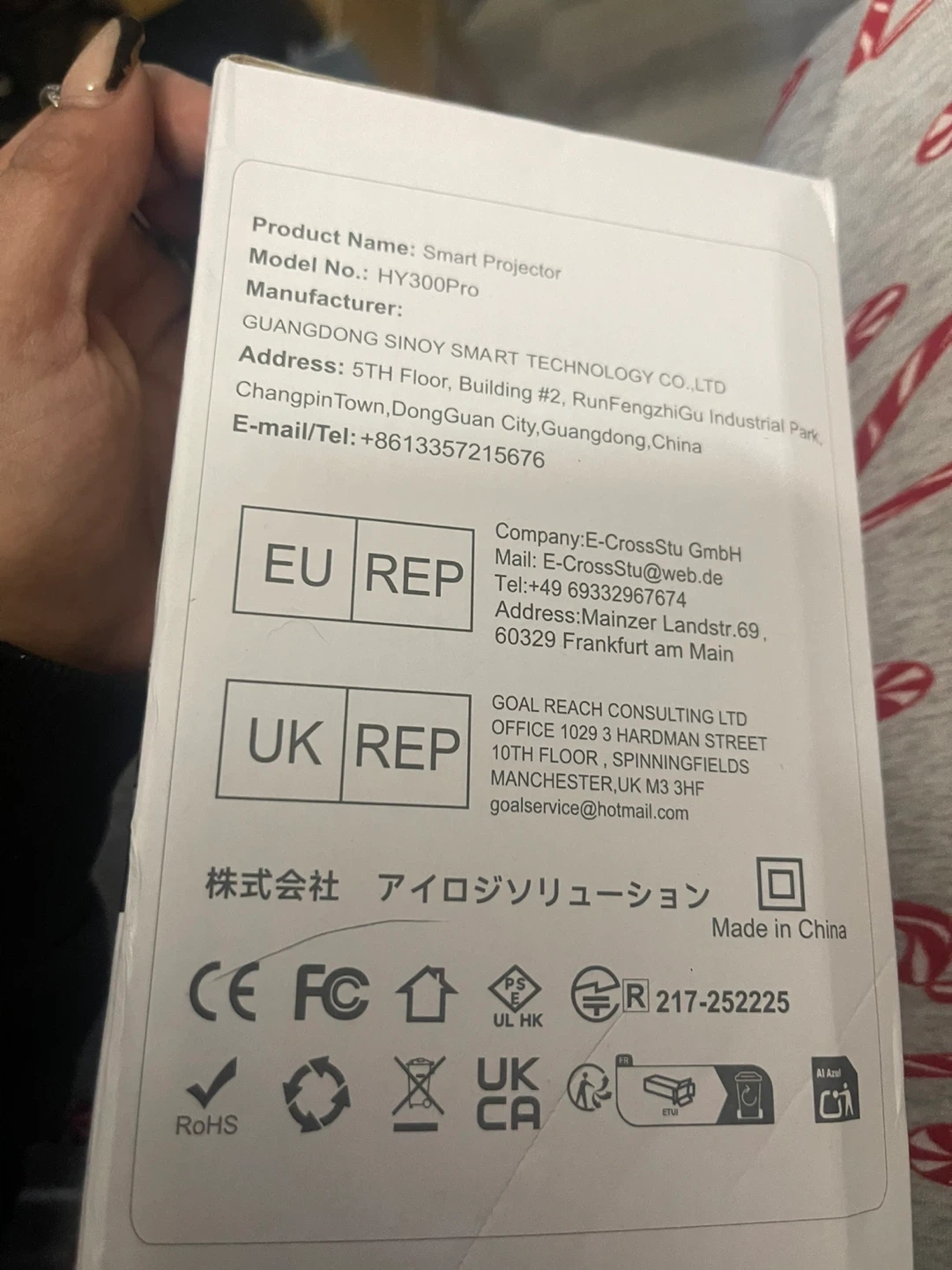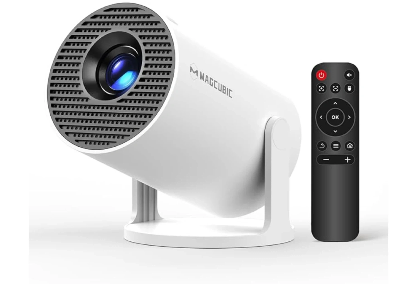 This is a white MAGCUBIC smart projector, model HY300Pro. It comes with a remote control. It's great for home entertainment!