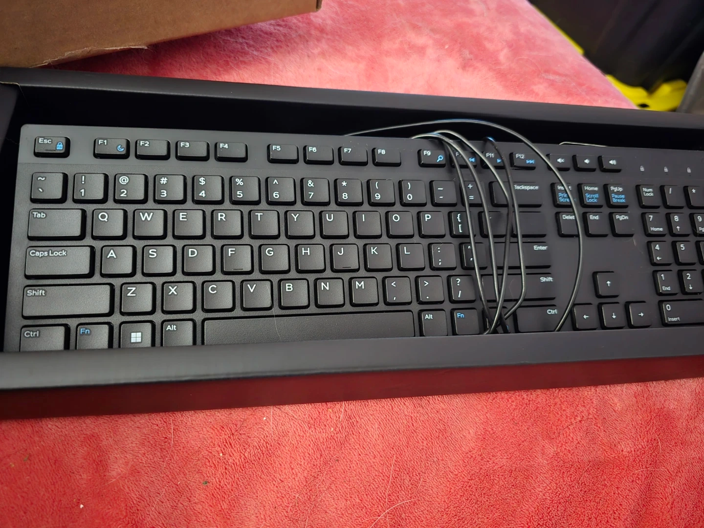 Standard black USB keyboard with a full QWERTY layout. It features dedicated function keys and a numeric keypad. Comes with necessary cables for connection.