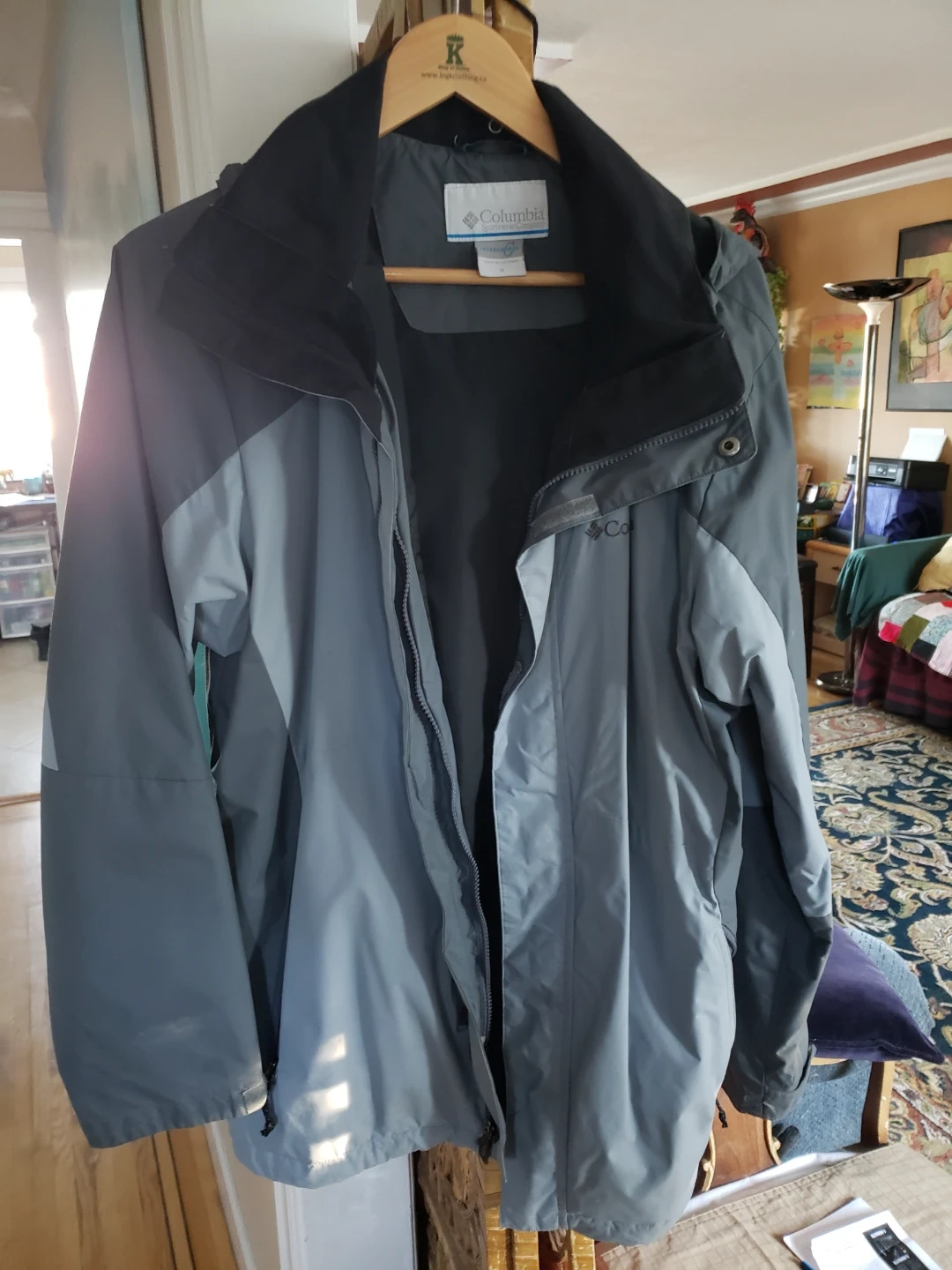 Columbia Sportswear Company jacket. It's a men's size medium in a grey and black colourway. Features the Interchange system for versatility. Great for layering or wearing on its own!