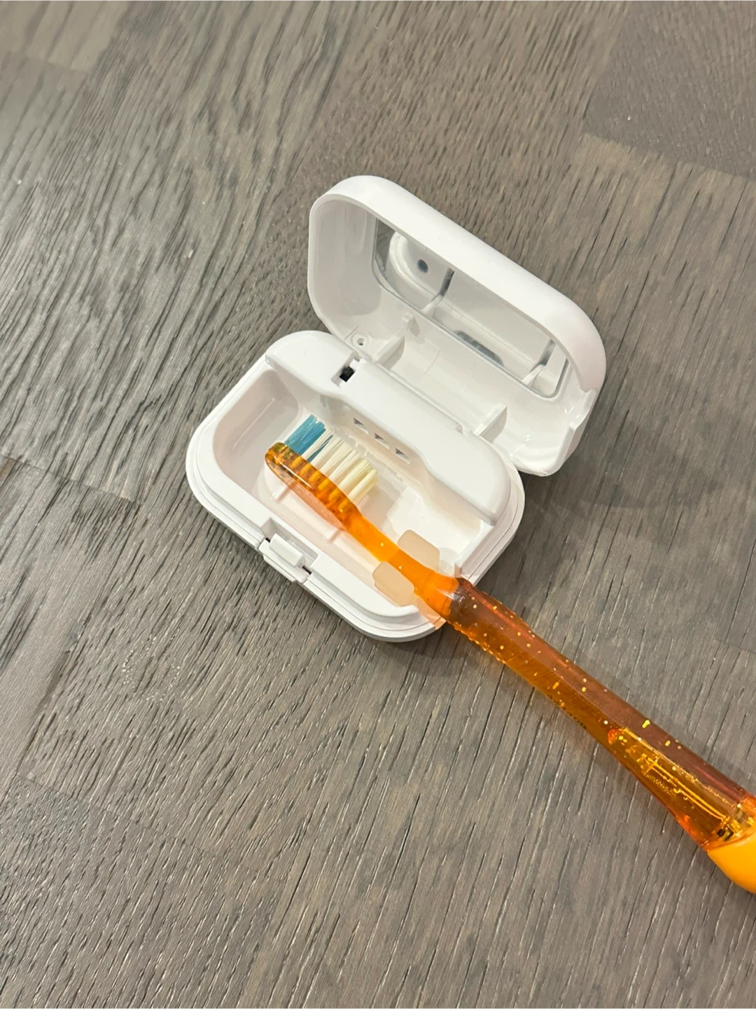 This portable toothbrush case sanitizes your toothbrush with UV light. It features a built-in mirror for convenience. The compact design makes it perfect for travel!