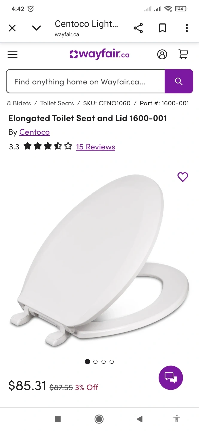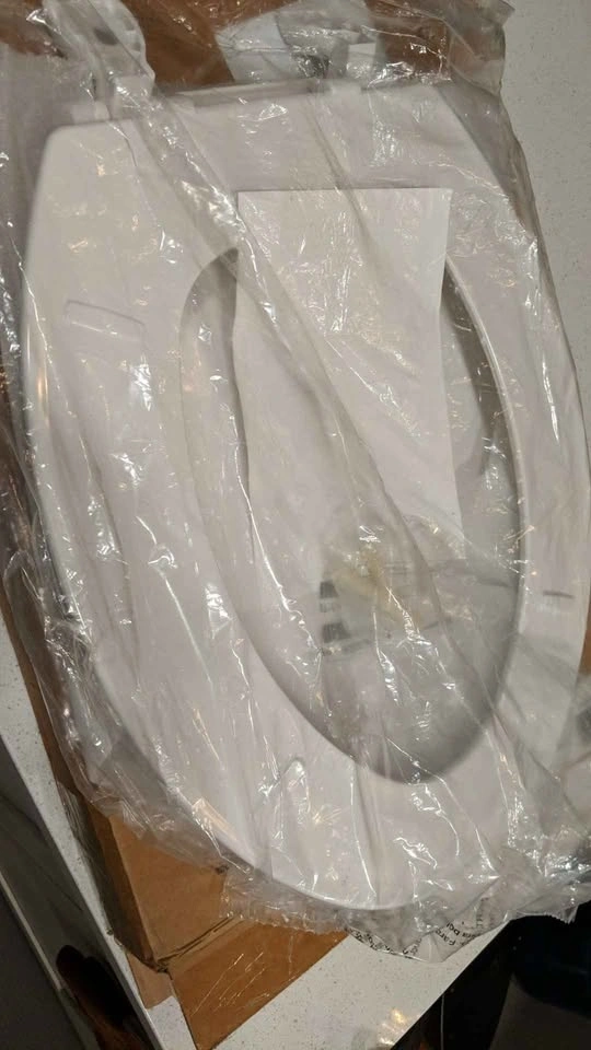Lightweight residential plastic seat with a cover for elongated toilet bowls. Features a flat bottom, corrosion-free hardware, top-mounted impact-absorbing hinges, and integrally-molded, sanitary bumpers. This is the final price.