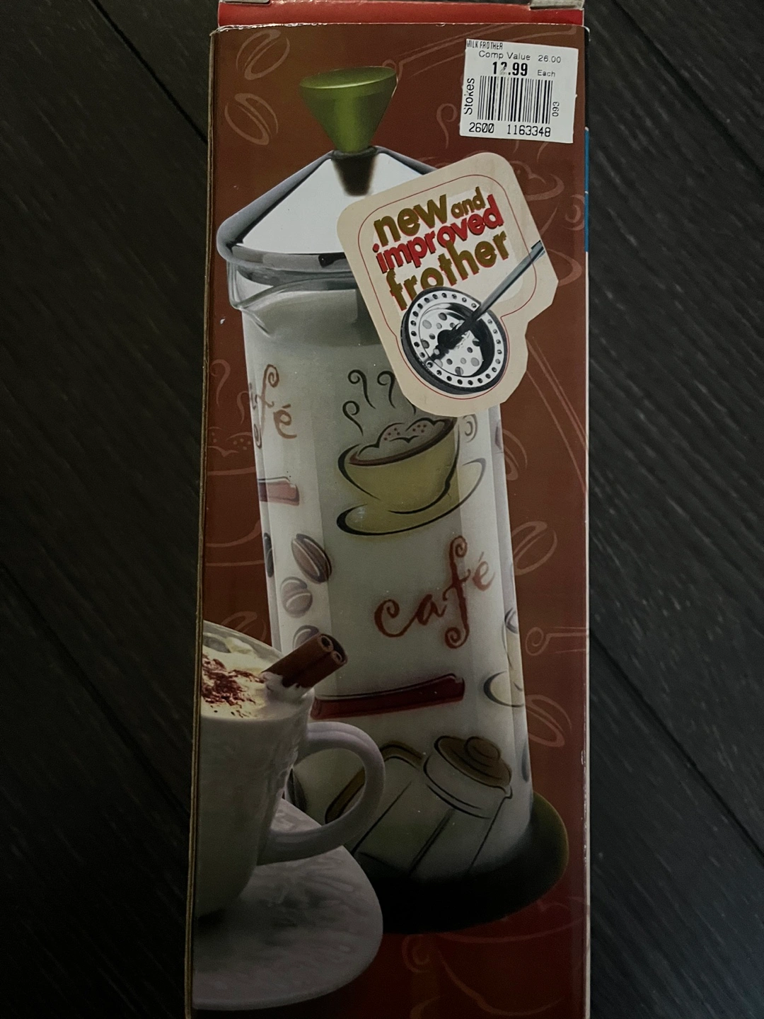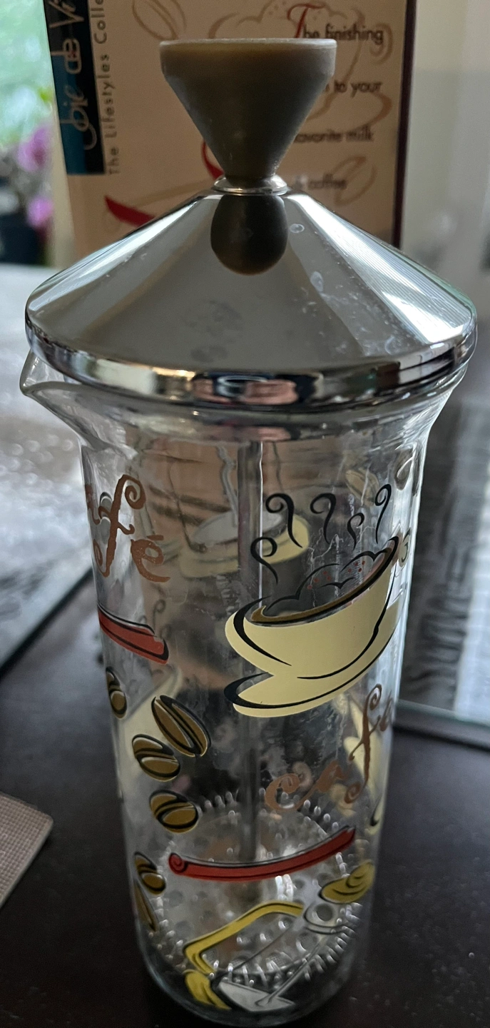 Selling a manual milk frother. I used it 3 times and decided I need a bigger one. Hence selling. Comes with original box and a small coaster that it sit on.