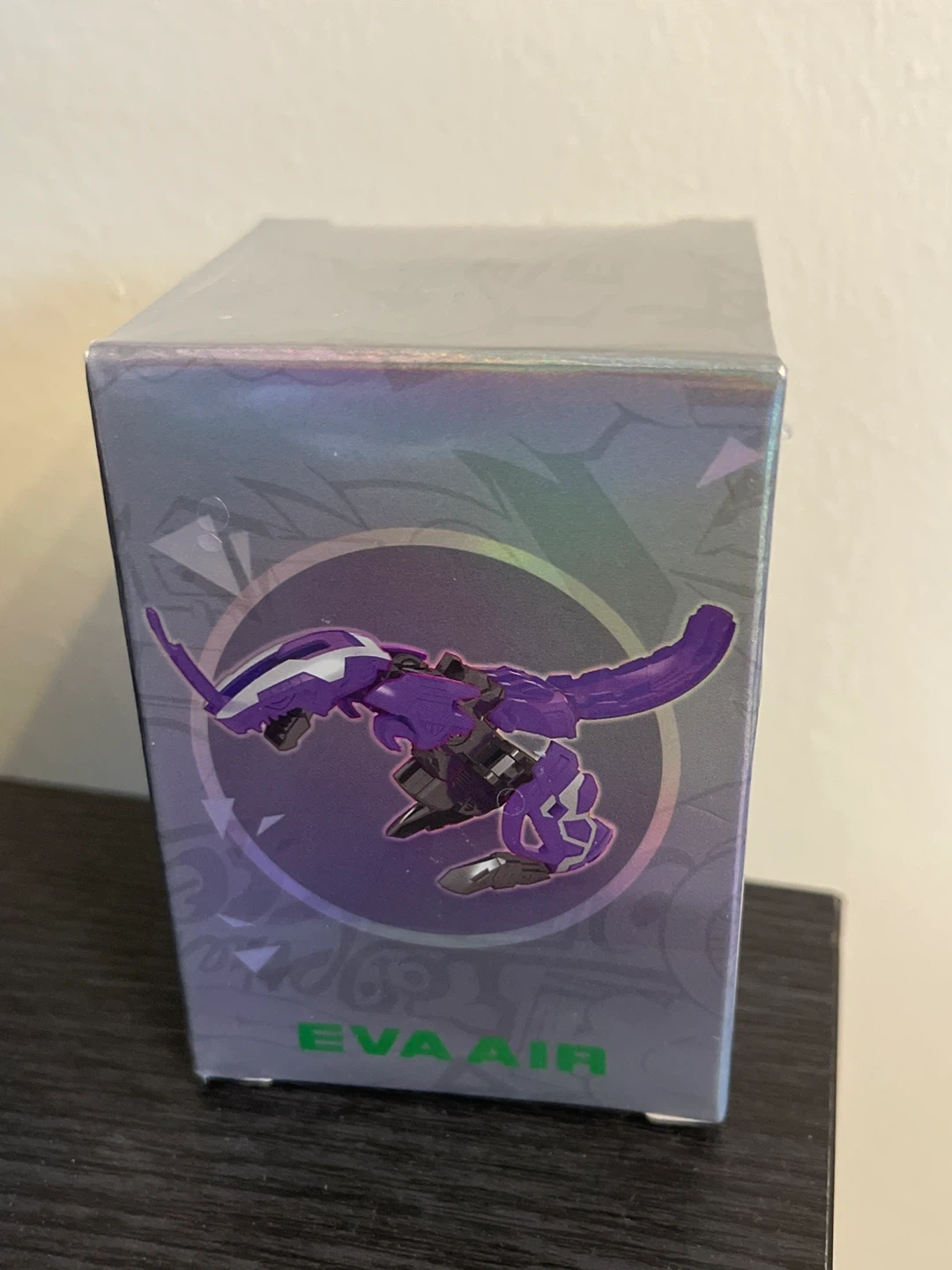 This is a purple toy robot that transforms into a dinosaur.