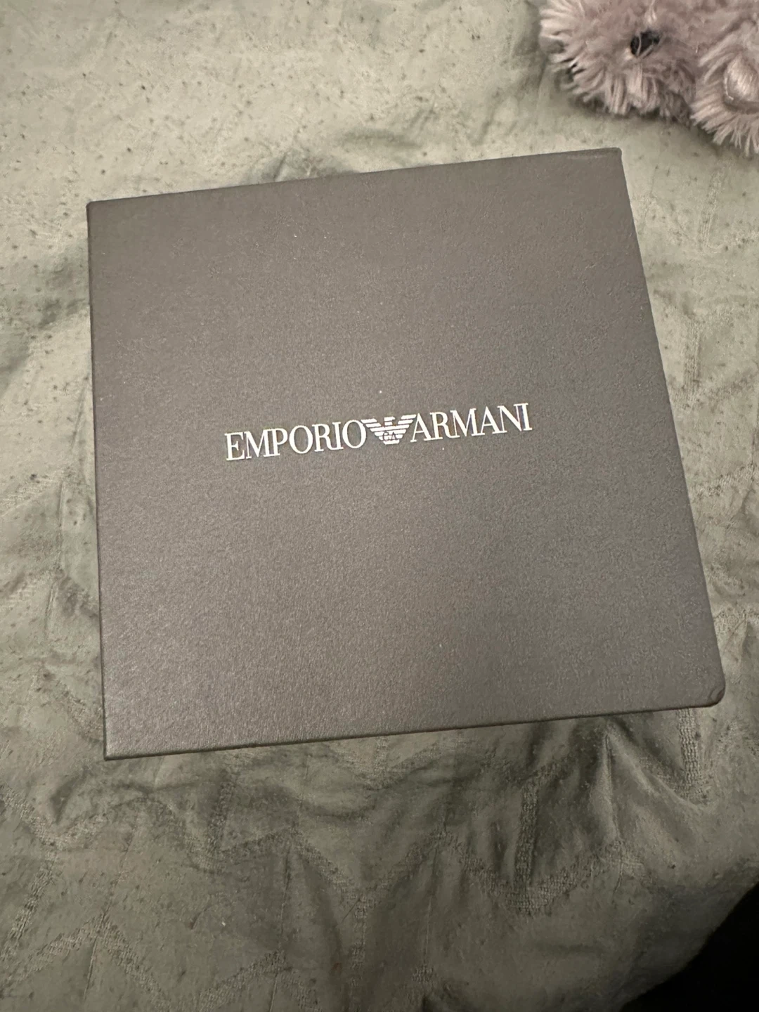 This is an Emporio Armani Meccanico mechanical watch with a brown leather strap. It features a skeleton dial and is made of stainless steel. Comes with the original box and authenticity certificate.