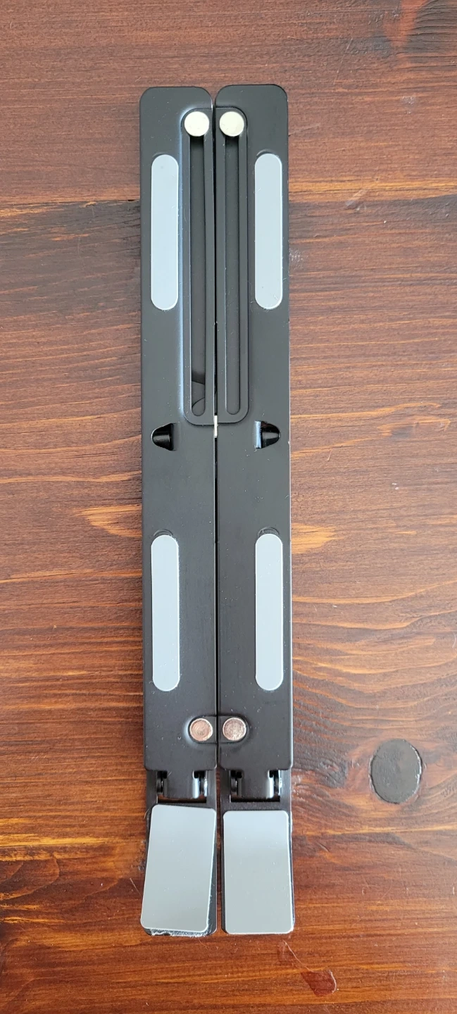 This adjustable laptop stand offers triangular support for stable typing and an ergonomic design to promote a better posture. Its aluminium alloy construction supports up to 20kg. The stand is approximately 250 mm long when folded and adjustable in height from 55-155 mm.