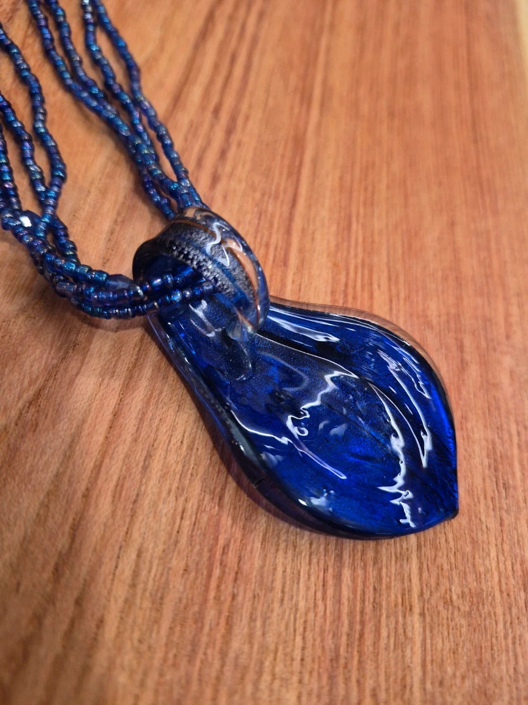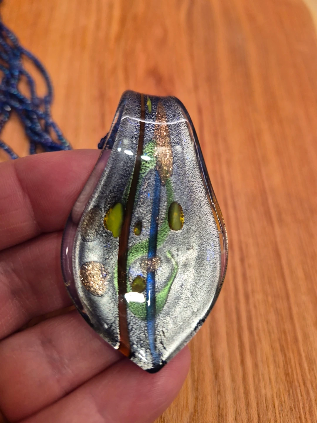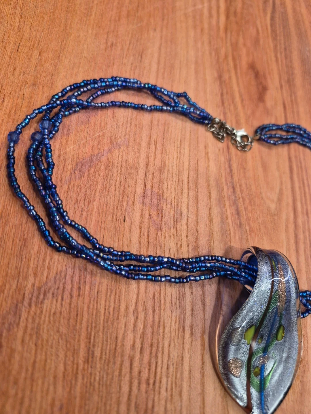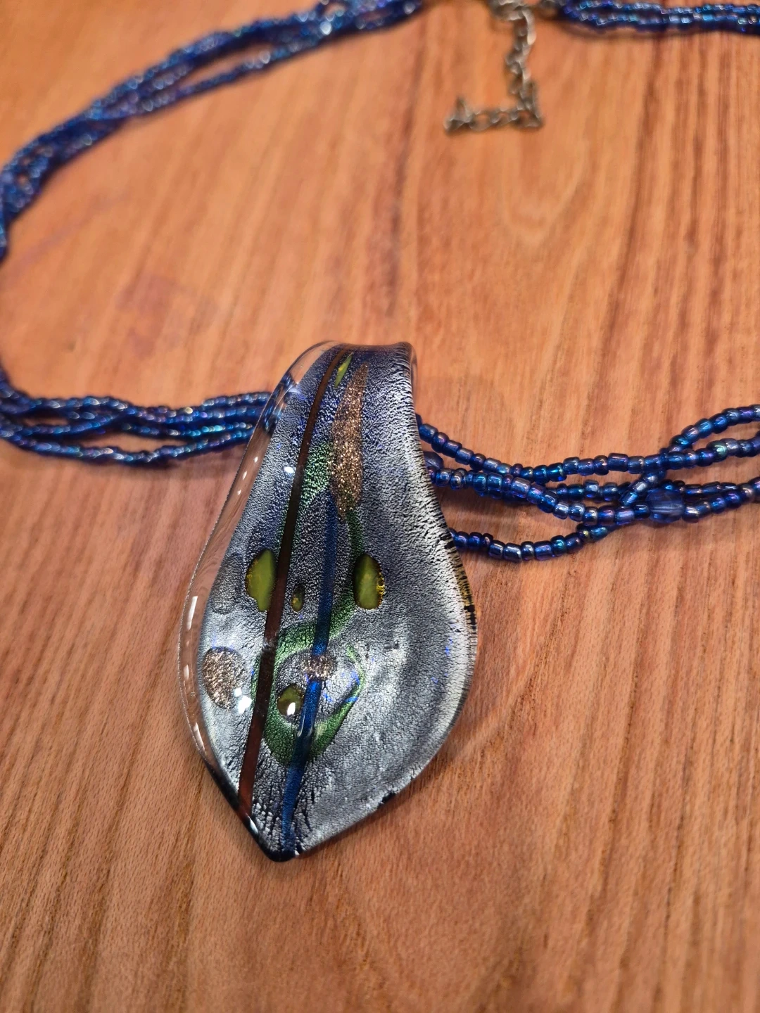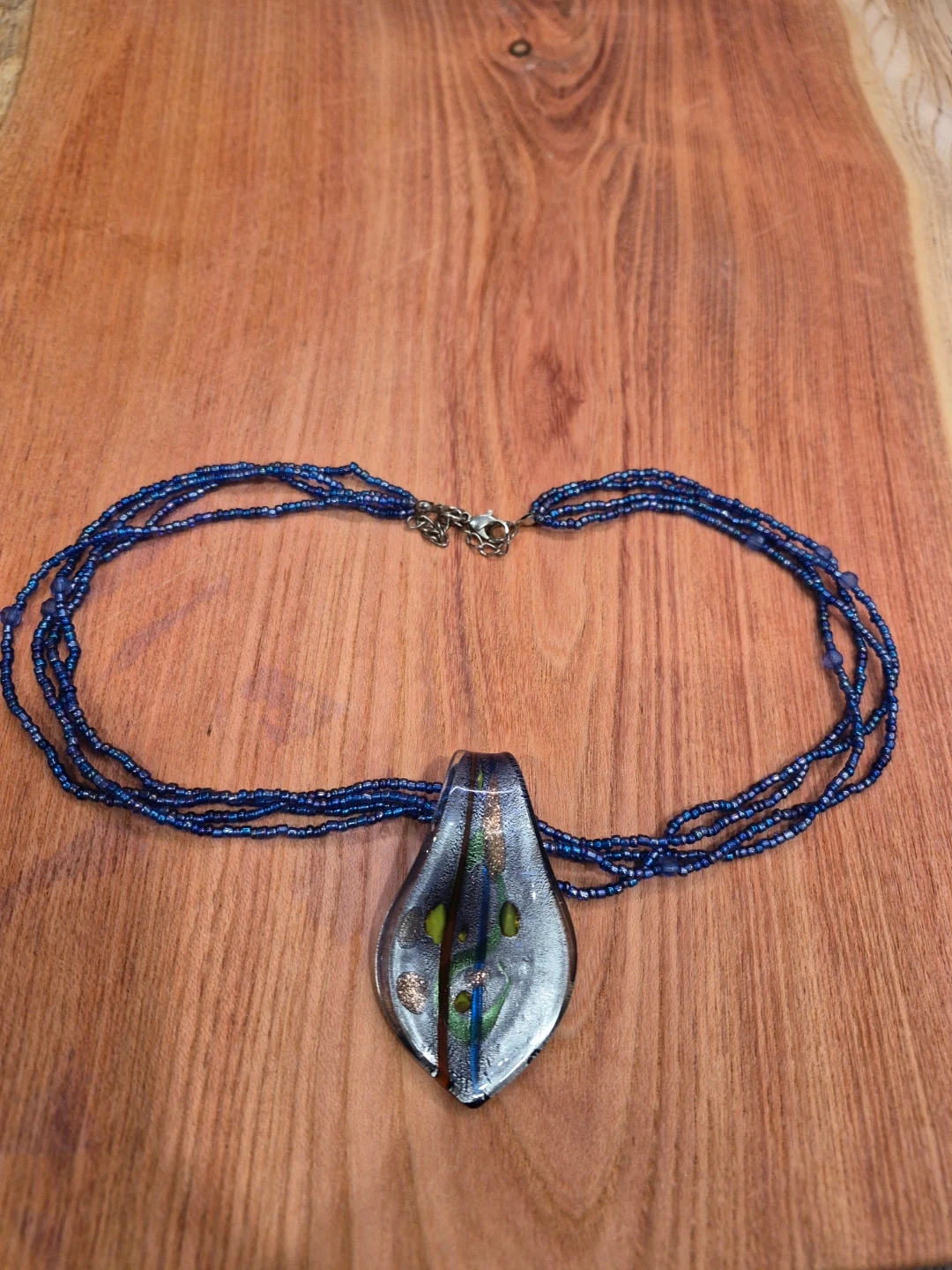 Beautiful 1 1/2" Glass Pentant with Seed Beads Strands Necklace