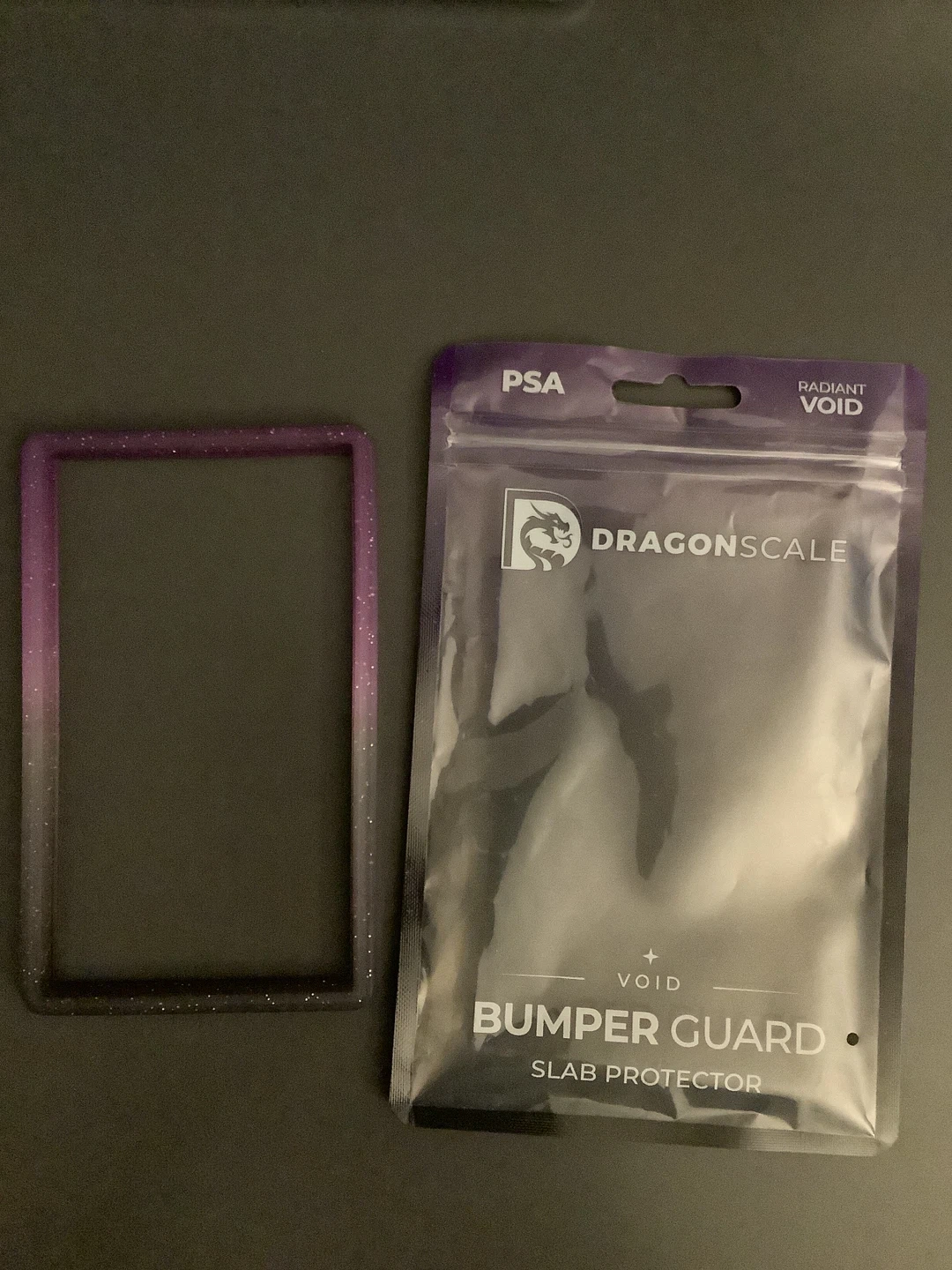 PSA card slab protector from DragonScale. Looks like there was a small defect: a pip/bump inside the frame that made the fit a bit awkward.