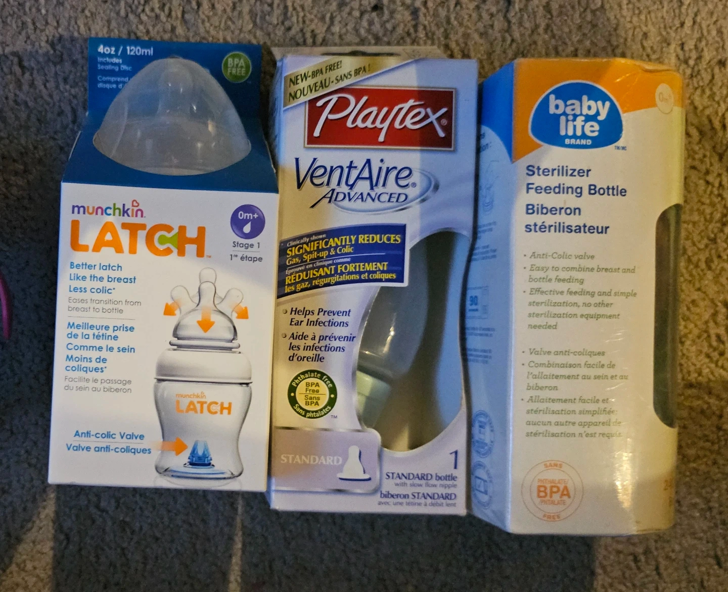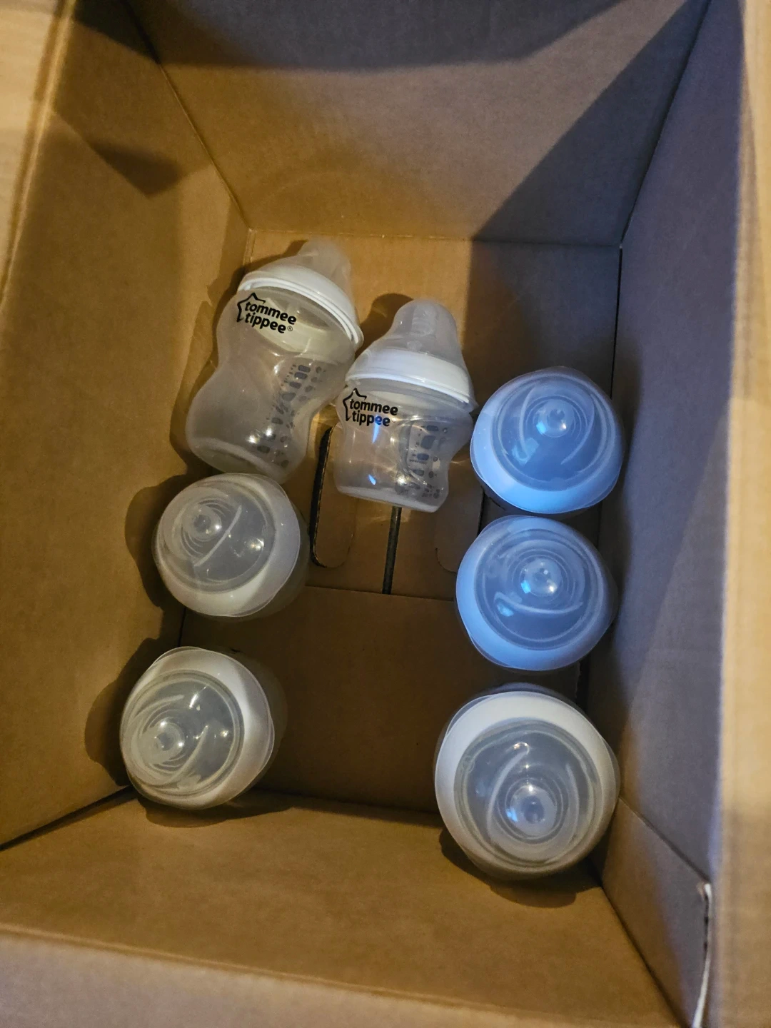 This set includes five 5oz and two 9oz Tommee Tippee baby bottles. The bottles are made of BPA-free plastic and come with their original caps.