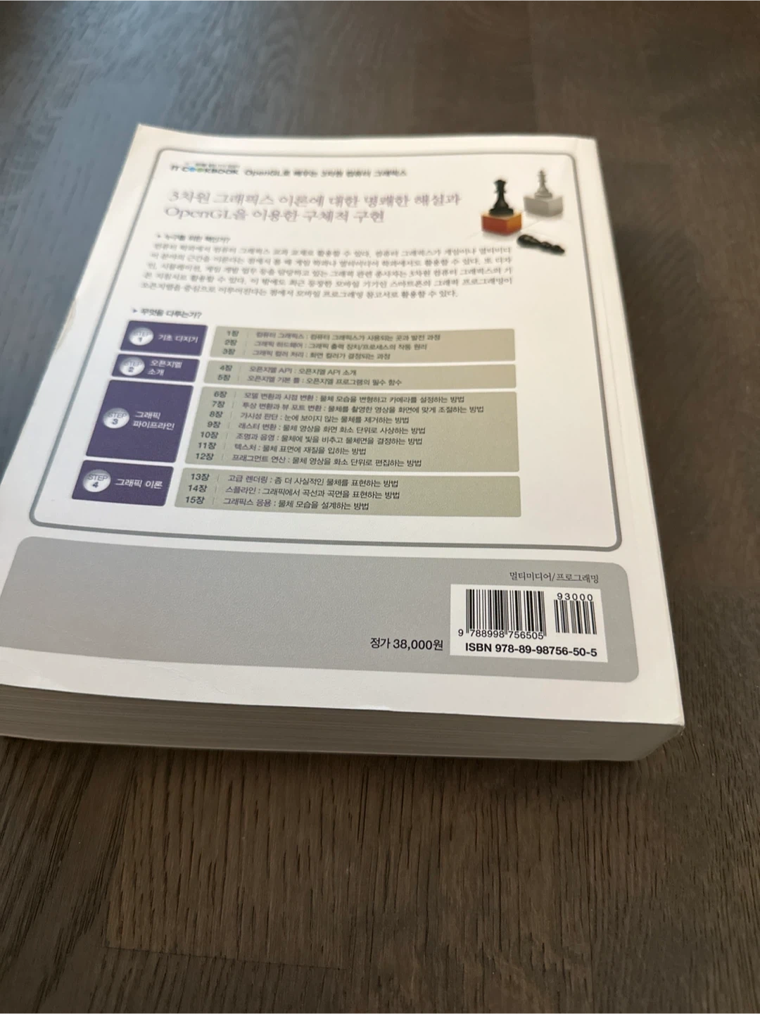 This book, "Learning 3D Computer Graphics with OpenGL" from the IT COOKBOOK series, covers the fundamentals of computer graphics. It's written by Ju Seok Kim. The content is organized into 19 chapters, detailing various techniques and applications of OpenGL for 3D graphics. It includes explanations of graphics pipeline, shaders, and rendering methods.