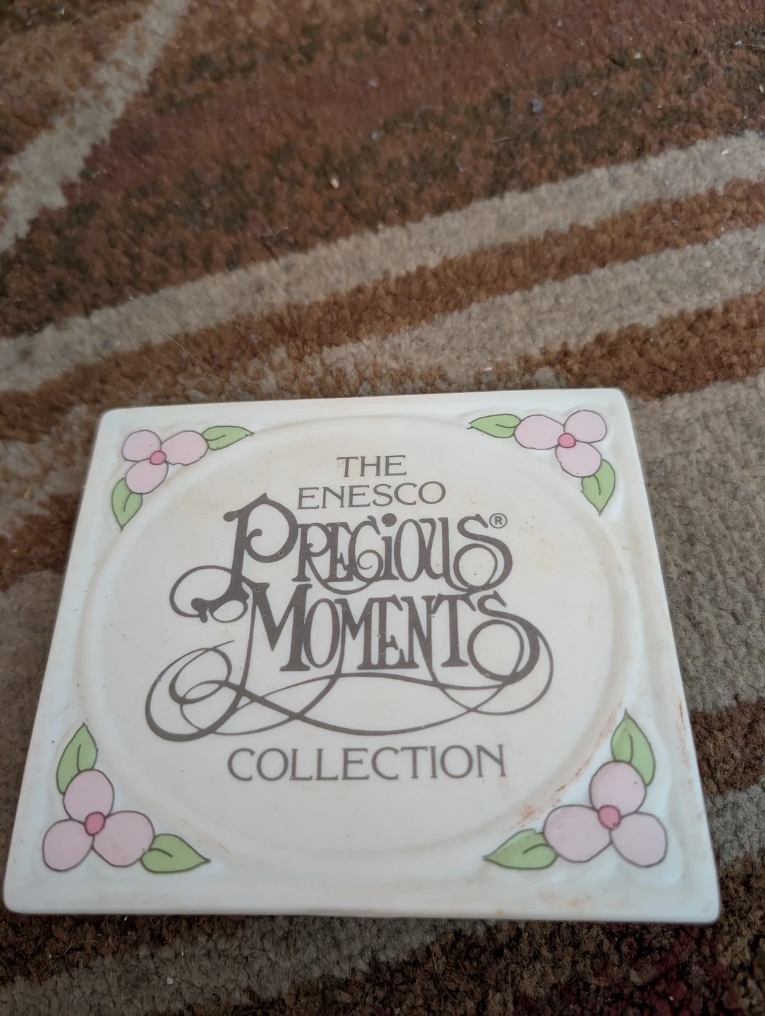 This is an Enesco Precious Moments Collection decorative plate. It features a ceramic construction with a pastel floral design. Great for display!