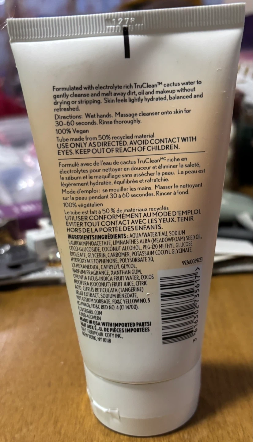 This COVERGIRL Hydrating Cream Cleanser uses TruClean™ Cactus Water to gently cleanse and remove dirt. It's formulated for all skin types and leaves skin feeling hydrated. The tube contains 150ml (5.0 FL. OZ.) of product.
