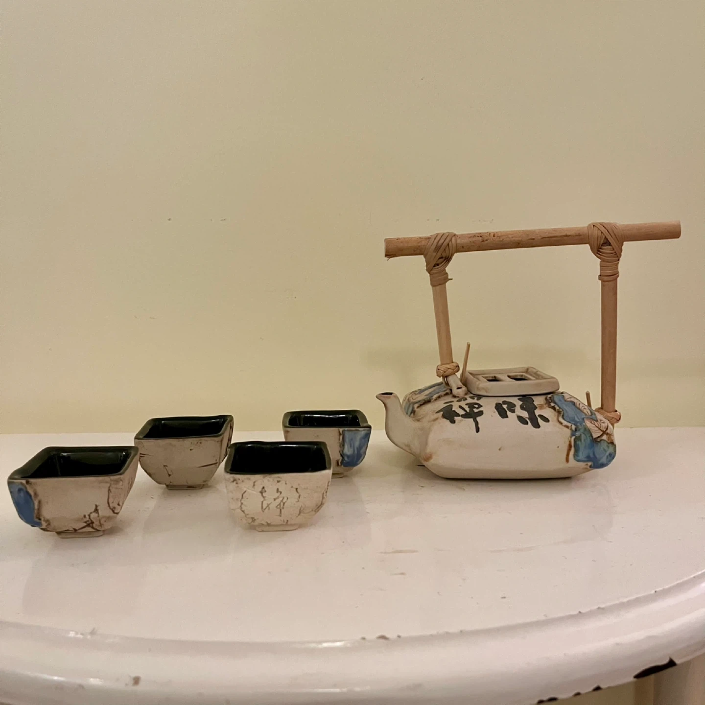 Vintage Malaysia Handicraft Tenmoku Pottery Tea Set