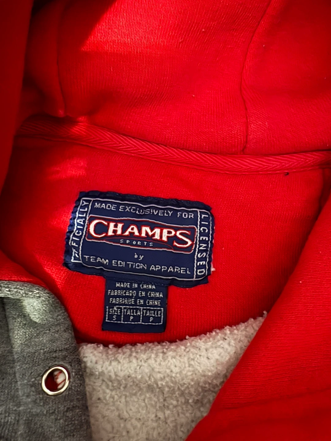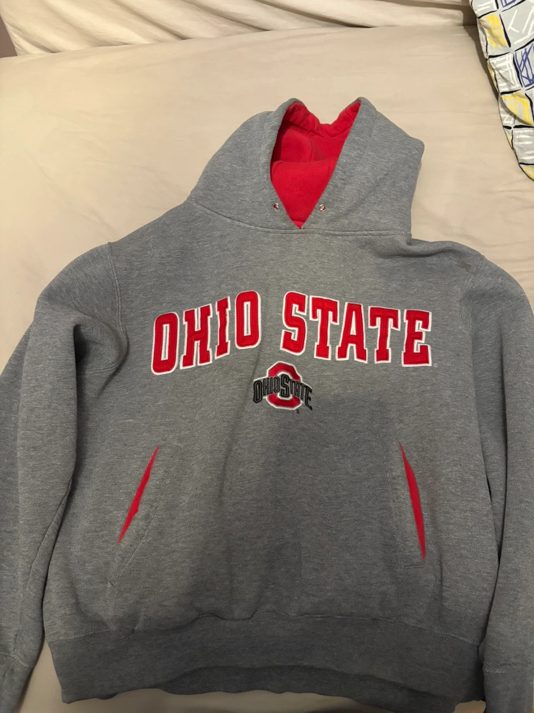 Grey pullover hoodie with red "Ohio State" graphic across the front and red accents. Made exclusively for Champs Sports by Team Edition Apparel. Size small.