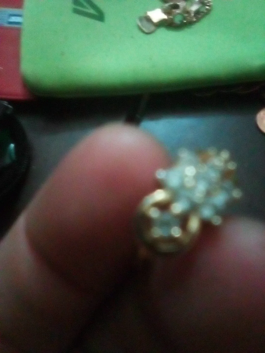 These gold-tone stud earrings sparkle with small rhinestones. They're a classic accessory for everyday wear. Small and delicate, they'll add a touch of shine to any outfit. Perfect for adding a bit of sparkle!
