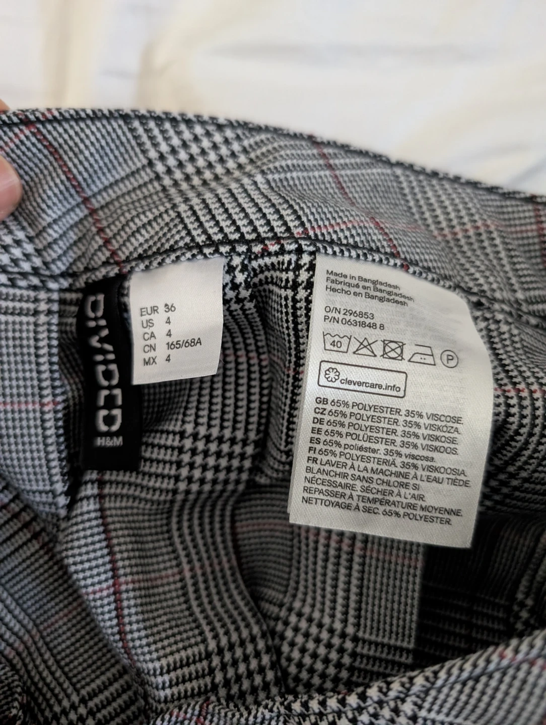 This is a plaid pleated skirt from Divided by H&M. It's a size 4. The material is 65% polyester and 35% viscose.