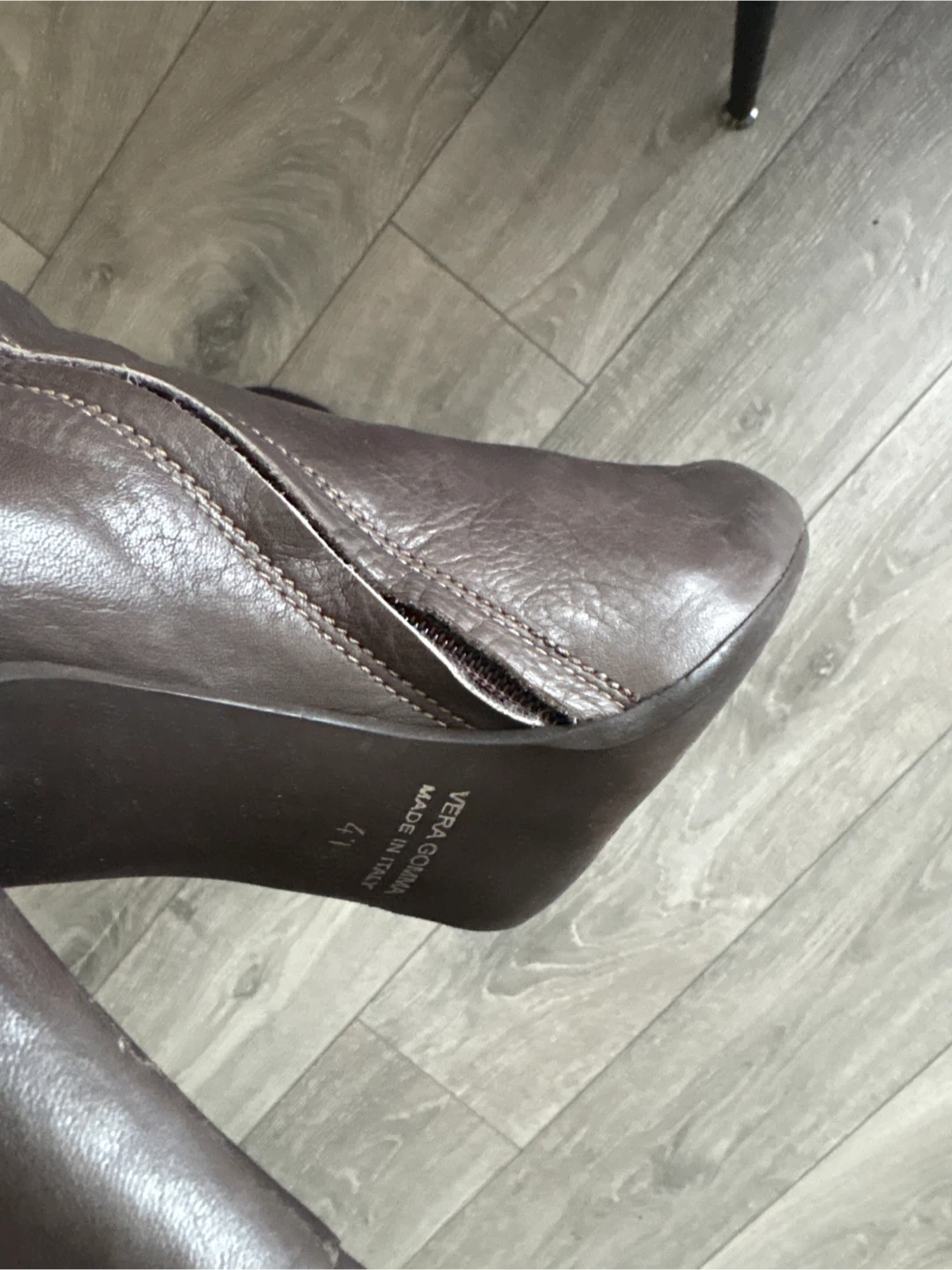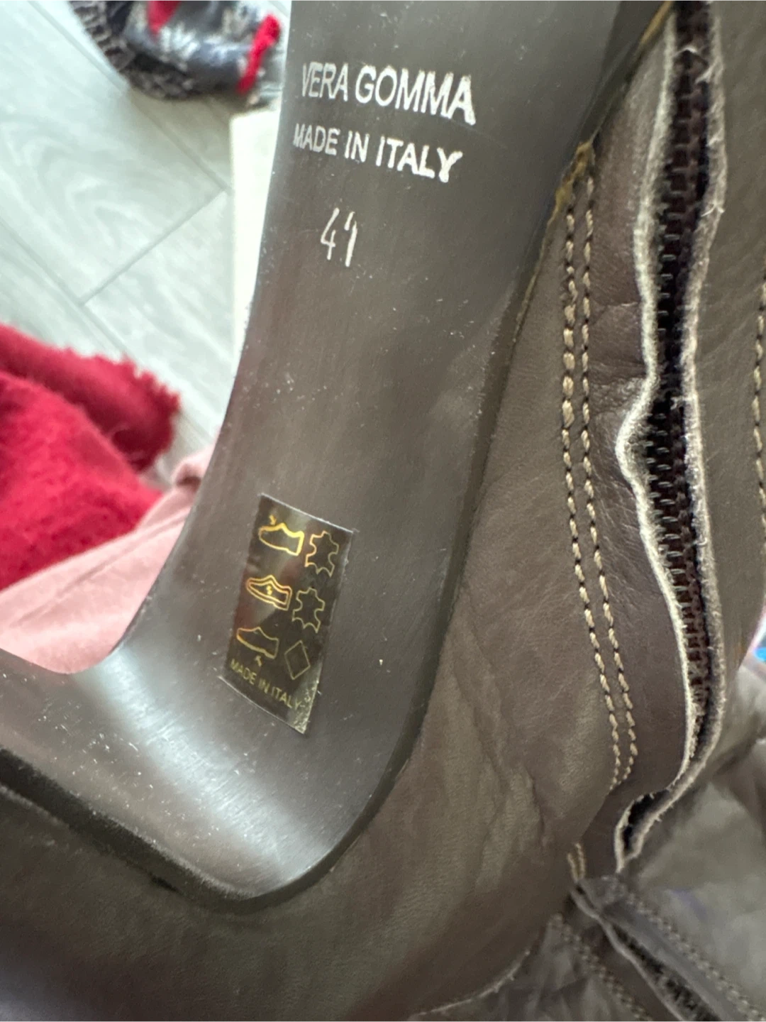 Authentic Vera Gomma knee-high boots. Made in Italy. These boots are crafted from genuine leather with a comfortable heel height. Perfect for adding a touch of sophistication to any outfit this fall and winter!