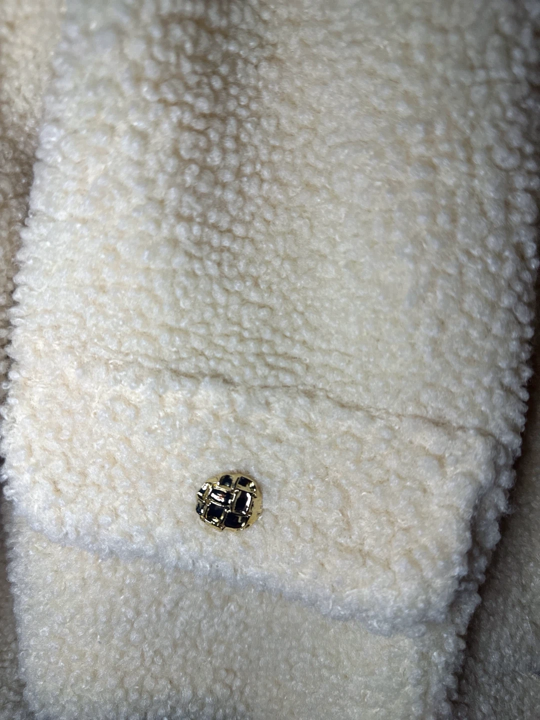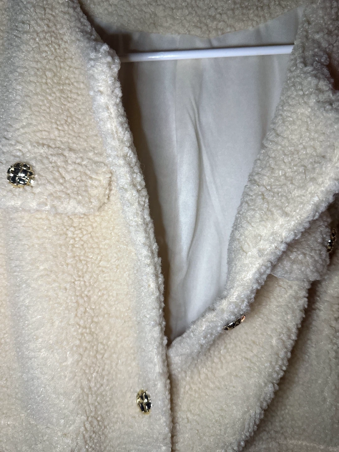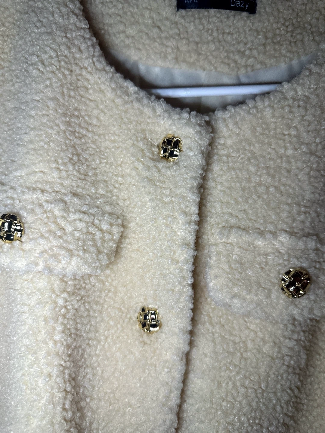 Dazy Cream Teddy Fleece Jacket with Gold Buttons
