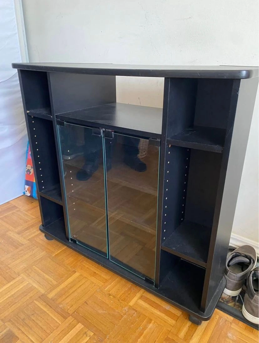 Black Media Console with Glass Doors