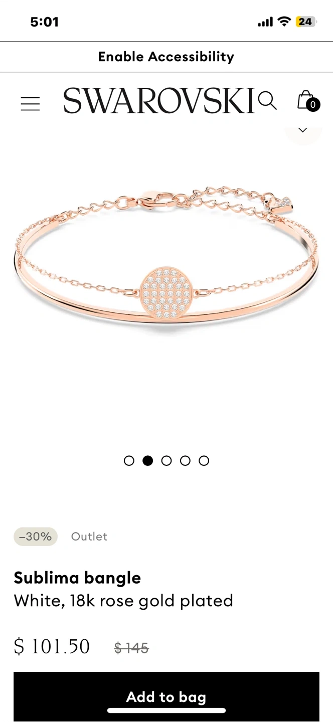 This elegant Swarovski bangle features a rose gold tone finish. It has a delicate chain with a circular pendant. It's a stylish accessory for any occasion. Perfect for gifting or adding a touch of sparkle to your everyday look!