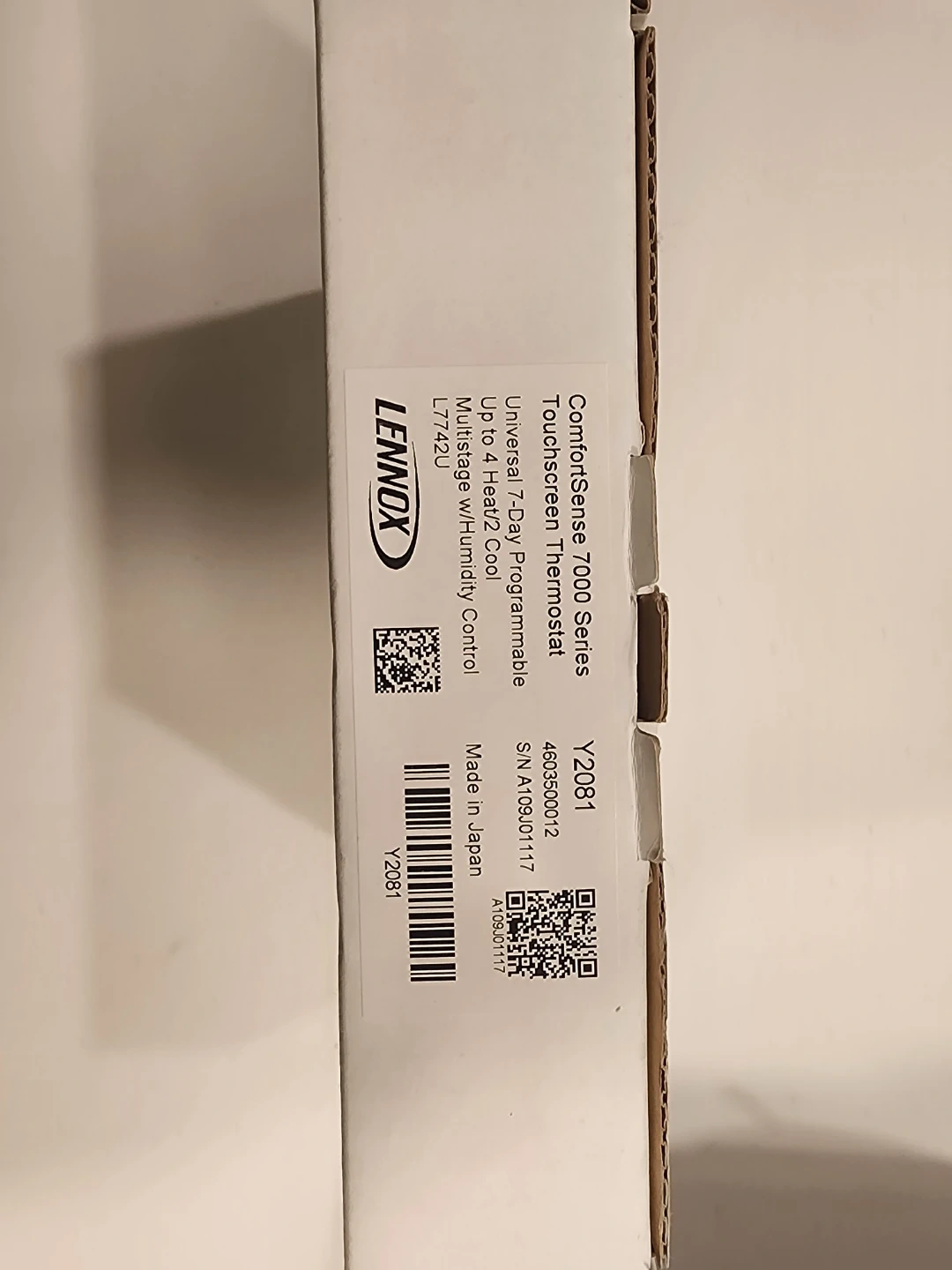 This is a Lennox ComfortSense 7000 Series Universal 7-Day Programmable Touchscreen Thermostat. It offers up to 4 Heat/2 Cool Multistage W/Humidity Control. It's made in Japan.