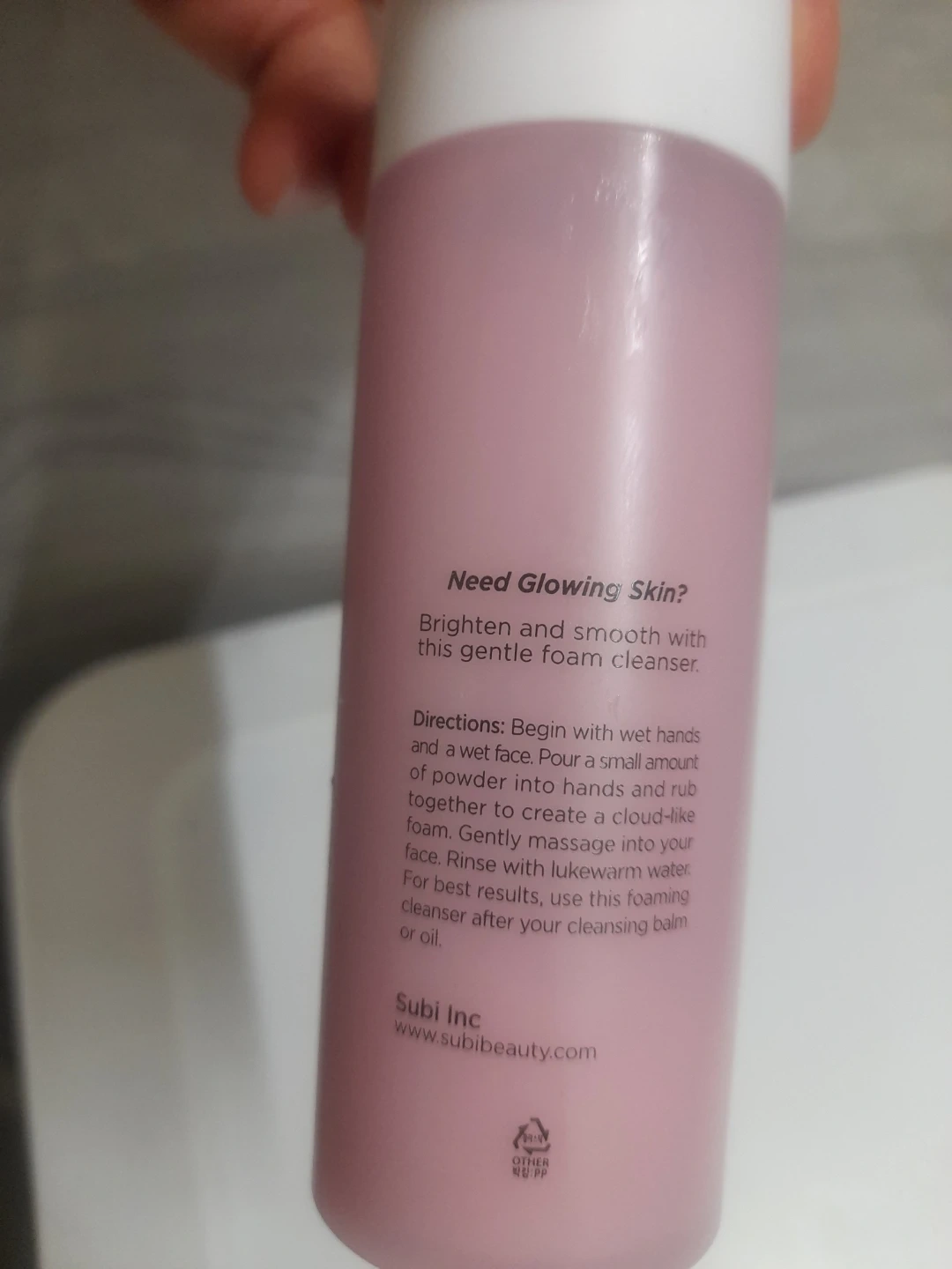 Subi Brightening Powder Cleanser for glowing skin. Gentle powder-to-foam face wash. 45g / 1.6 oz.