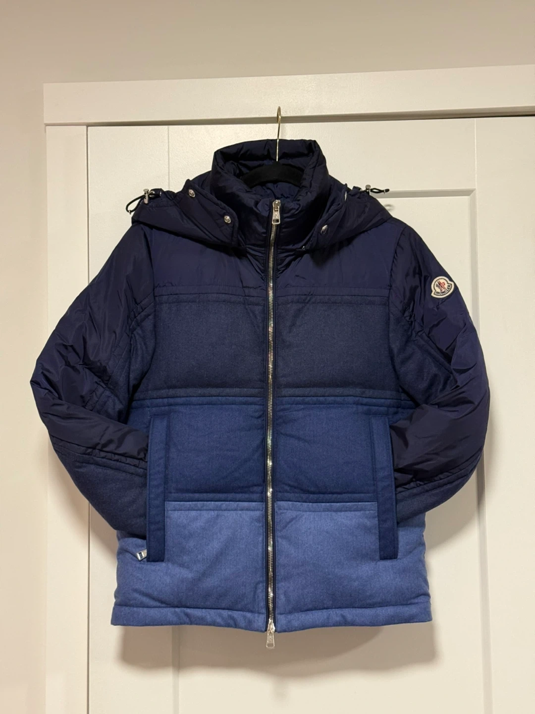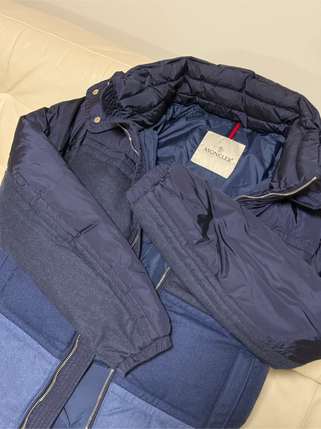 Selling a 100% authentic Moncler ROUVE Giubbotto. This is a premium men’s collection piece, known for its sophisticated tri-color gradient and mixed-material design. It’s significantly more stylish and unique than the standard all-nylon models.