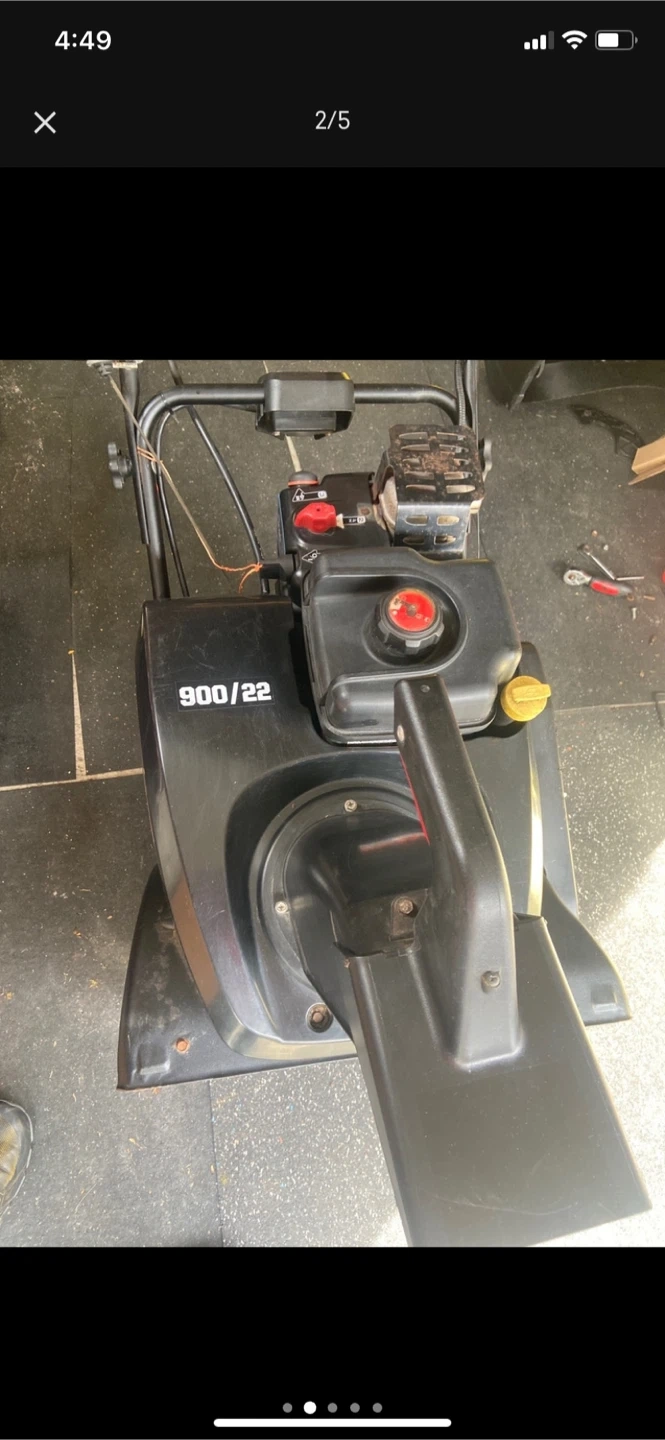 This is a Craftsman 900/22 snowblower. It features a durable black housing with yellow accents on the auger mechanism. This machine is ready to tackle winter snow. New paddles scrapper bar. Oil change spark plug. Auger shoot replaced everything working completely overhauled And turn up Electric start. $600
