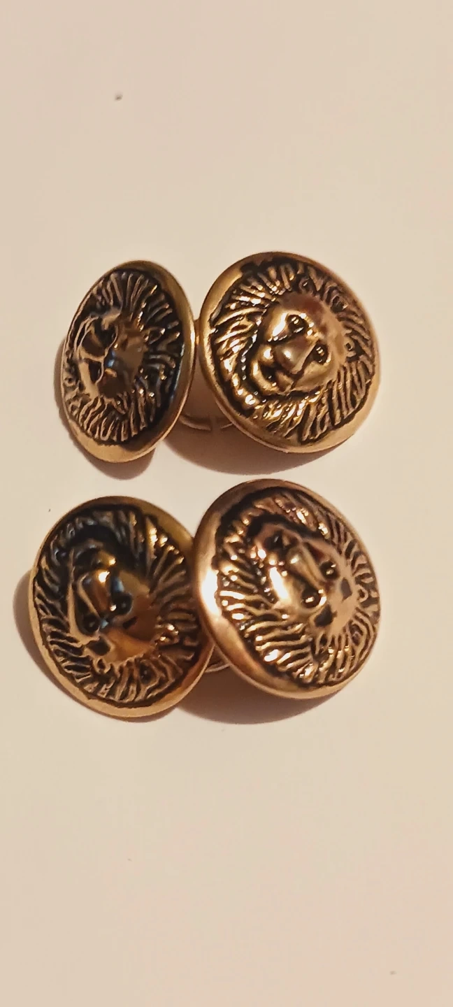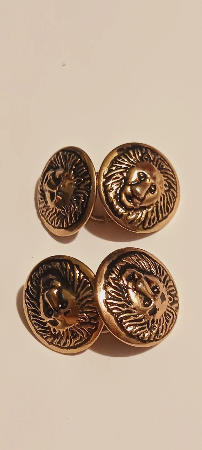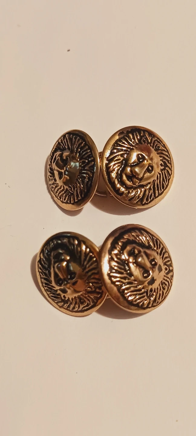 Set of Gold Tone Lion Head decorative cufflinks featuring embossed lion heads. Brass-toned metal construction. Classic design for formal wear !! Excellent condition, like new !! ALL MY PRICES ARE NEGOTIABLE !!